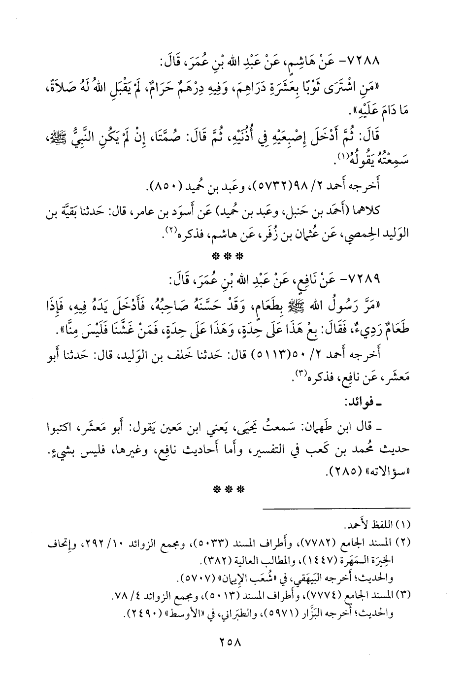(¬٢) المسند الجامع (٧٧٨٢)، وأطراف المسند (٥٠٣٣)، ومَجمَع الزوائد ١٠/ ٢٩٢، وإتحاف الخِيرَة المَهَرة (١٤٤٧)، والمطالب العالية (٣٨٢).