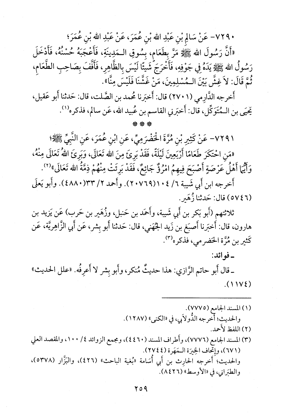 (¬٢) المسند الجامع (٧٧٧٦)، وأطراف المسند (٤٤٦٠)، ومَجمَع الزوائد ٤/ ١٠٠، والمقصد العَلي (٦٧١)، وإتحاف الخِيرَة المَهَرة (٢٧٤٤).