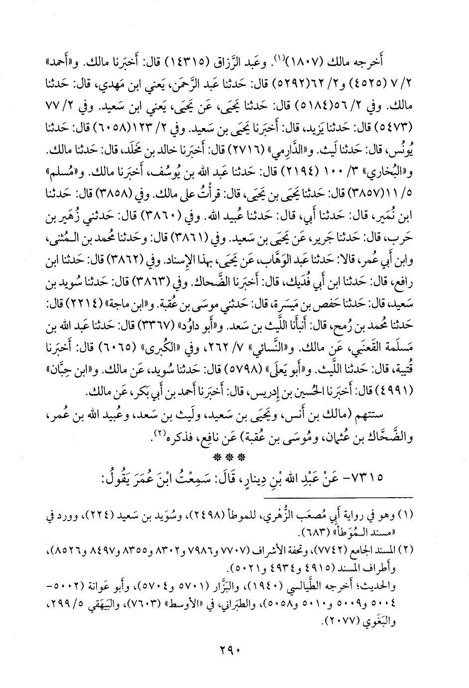 ستتهم (مالك بن أنس، ويحيى بن سعيد، وليث بن سعد، وعُبيد الله بن عمر، والضحاك بن عثمان، وموسى بن عُقبة) عن نافع، فذكره (¬١).