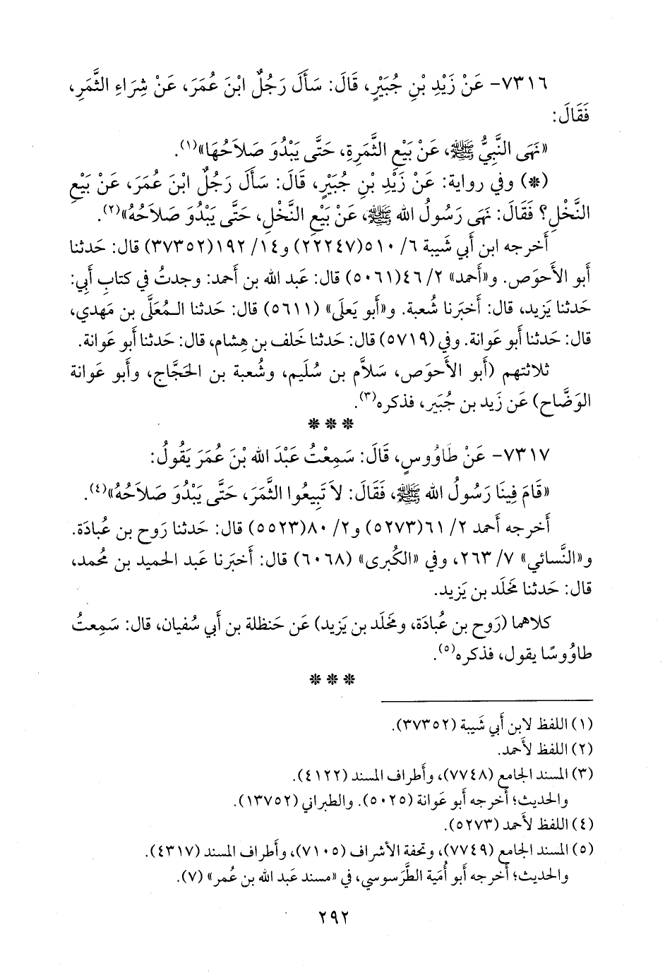 (¬٢) المسند الجامع (٧٧٤٩)، وتحفة الأشراف (٧١٠٥)، وأطراف المسند (٤٣١٧).