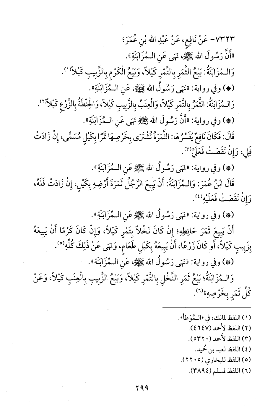 - وفي رواية: «نهى رسول الله صَلى الله عَليه وسَلم عن المزابنة».