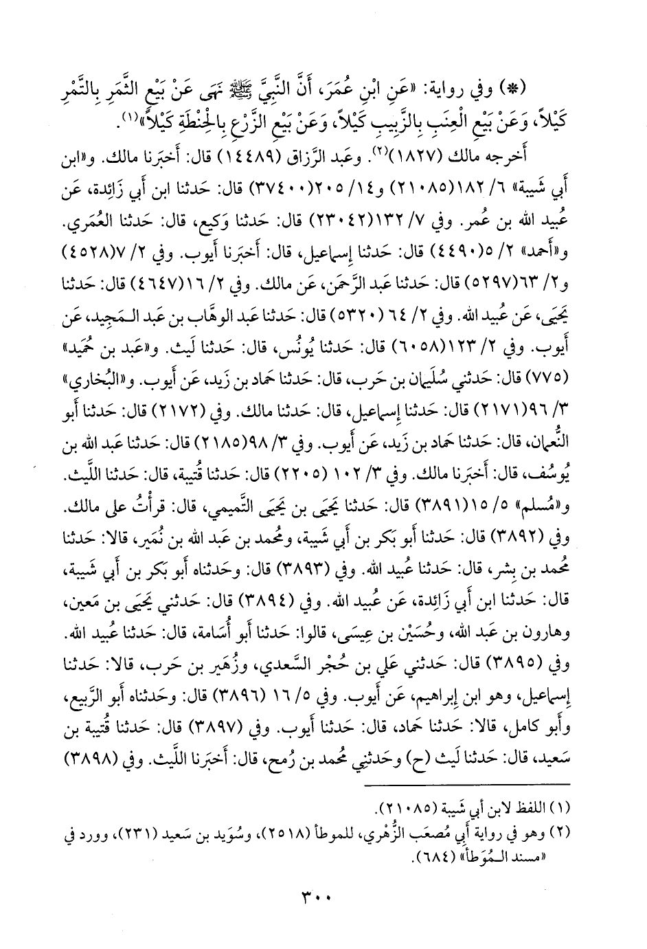 قال: وحدثنيه أَبو الطاهر، قال: أخبرنا ابن وهب، قال: حدثني يونس (ح) وحدثناه ابن رافع، قال: حدثنا ابن أبي فُديك، قال: أخبرني الضحاك (ح) وحدثنيه سويد بن سعيد، قال: حدثنا حفص بن ميسرة، قال: حدثني موسى بن عُقبة. و «ابن ماجة» (٢٢٦٥) قال: حدثنا محمد بن رُمح، قال: أنبأنا الليث بن سعد. و «أَبو داود» (٣٣٦١) قال: حدثنا أَبو بكر بن أبي شيبة، قال: حدثنا ابن أبي زائدة، عن عُبيد الله. و «النَّسَائي» ٧/ ٢٦٦، وفي «الكبرى» (٦٠٧٩) قال: أخبرني زياد بن أيوب، قال: حدثنا ابن عُلَية، قال: حدثنا أيوب. وفي ٧/ ٢٦٦، وفي «الكبرى» (٦٠٨٠) قال: أخبرنا قتيبة، عن مالك. وفي ٧/ ٢٧٠، وفي «الكبرى» (٦٠٩٥) قال: أخبرنا قتيبة، قال: حدثنا الليث. و «ابن حِبَّان» (٤٩٩٨) قال: أخبرنا عمر بن سعيد بن سنان، قال: أخبرنا أحمد بن أَبي بكر، عن مالك. وفي (٤٩٩٩) قال: أخبرنا الحسن بن سفيان، قال: حدثنا محمد بن عبد الله بن نُمير، قال: حدثنا أبي، قال: حدثنا عُبيد الله بن عمر.