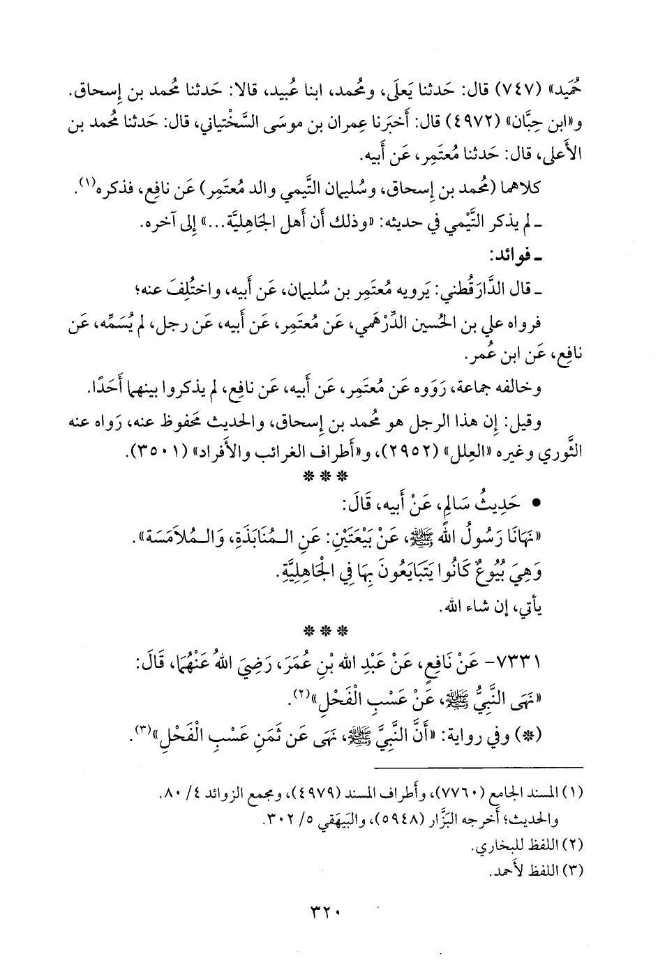 وقال عبد الله بن أحمد: حدثني أبي، قال: حدثنا هُشيم، قال: وعبيد الله بن عمر، عن نافع، عن ابن عمر، عن النبي صَلى الله عَليه وسَلم مثل ذلك.