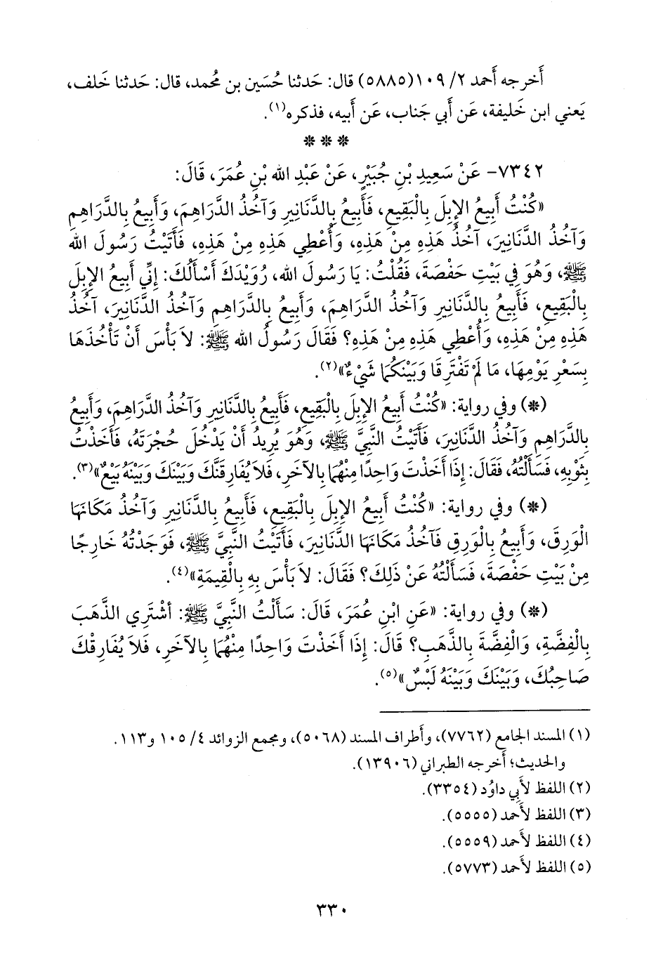 - وفي رواية: «كنت أبيع الإبل بالبقيع، فأبيع بالدنانير وآخذ مكانها الورق، وأبيع بالورق فآخذ مكانها الدنانير، فأتيت النبي صَلى الله عَليه وسَلم فوجدته خارجا من بيت حفصة، فسألته عن ذلك؟ فقال: لا بأس به بالقيمة» (¬٣).