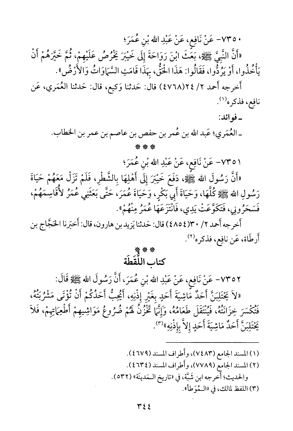 ٧٣٥٠ - عن نافع، عن عبد الله بن عمر؛