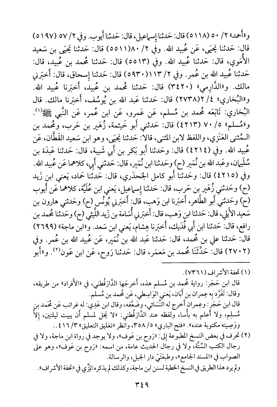 قال البخاري: تابعه محمد بن مسلم، عن عَمرو، عن ابن عمر، عن النبي صَلى الله عَليه وسَلم (¬١). و «مسلم» ٥/ ٧٠ (٤٢١٣) قال: حدثني أَبو خيثمة زهير بن حرب، ومحمد بن المثنى العنزي، واللفظ لابن المثنى, قالا: حدثنا يحيى، وهو ابن سعيد القطان، عن عُبيد الله. وفي (٤٢١٤) قال: وحدثنا أَبو بكر بن أبي شيبة، قال: حدثنا عَبدة بن سليمان، وعبد الله بن نُمير (ح) وحدثنا ابن نُمير، قال: حدثني أبي، كلاهما عن عُبيد الله. وفي (٤٢١٥) قال: وحدثنا أَبو كامل الجَحدري، قال: حدثنا حماد، يعني ابن زيد (ح) وحدثني زهير بن حرب، قال: حدثنا إسماعيل، يعني ابن عُلَية، كلاهما عن أيوب (ح) وحدثني أَبو الطاهر، قال: أخبرنا ابن وهب، قال: أخبرني يونس (ح) وحدثني هارون بن سعيد الأيلي، قال: حدثنا ابن وهب، قال: أخبرني أُسامة بن زيد الليثي (ح) وحدثنا محمد بن رافع، قال: حدثنا ابن أبي فُديك، قال: أخبرنا هشام، يعني ابن سعد. و «ابن ماجة» (٢٦٩٩) قال: حدثنا علي بن محمد، قال: حدثنا عبد الله بن نُمير، عن عُبيد الله بن عمر. وفي (٢٧٠٢) قال: حدثنا محمد بن معمر، قال: حدثنا روح، عن ابن عون (¬٢). و «أَبو