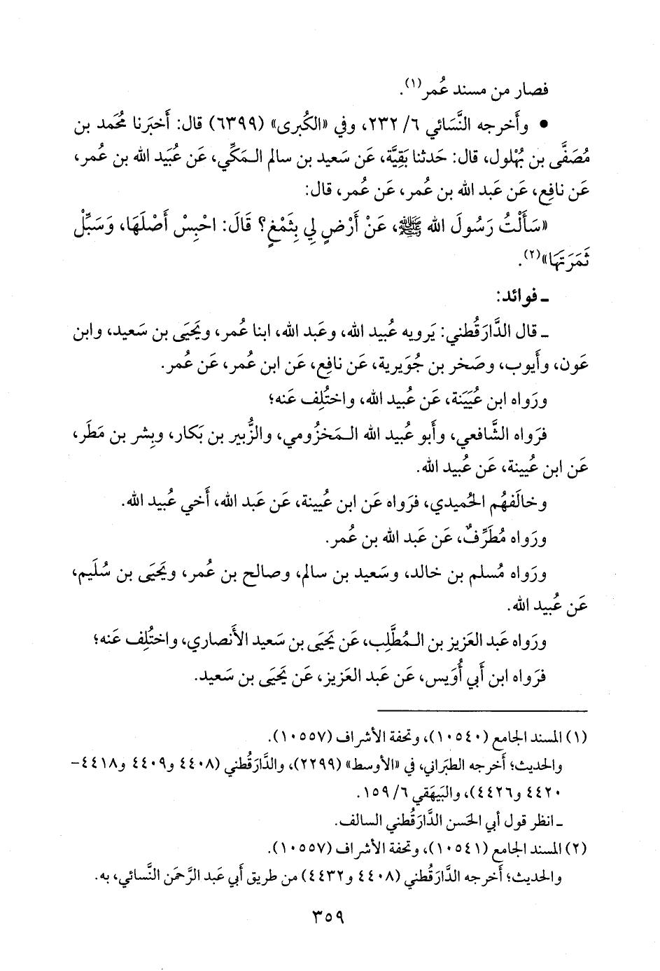 - قال الدارقُطني: يرويه عبيد الله، وعبد الله، ابنا عمر، ويحيى بن سعيد، وابن عون، وأيوب، وصخر بن جويرية، عن نافع، عن ابن عمر، عن عمر.