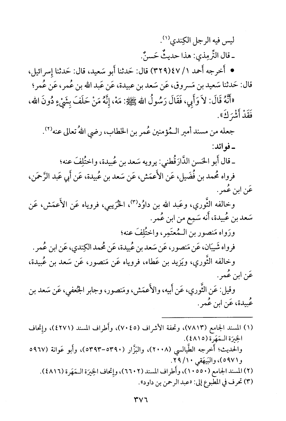 - قال أَبو الحسن الدارقُطني: يرويه سعد بن عُبَيدة، واختُلِف عنه؛