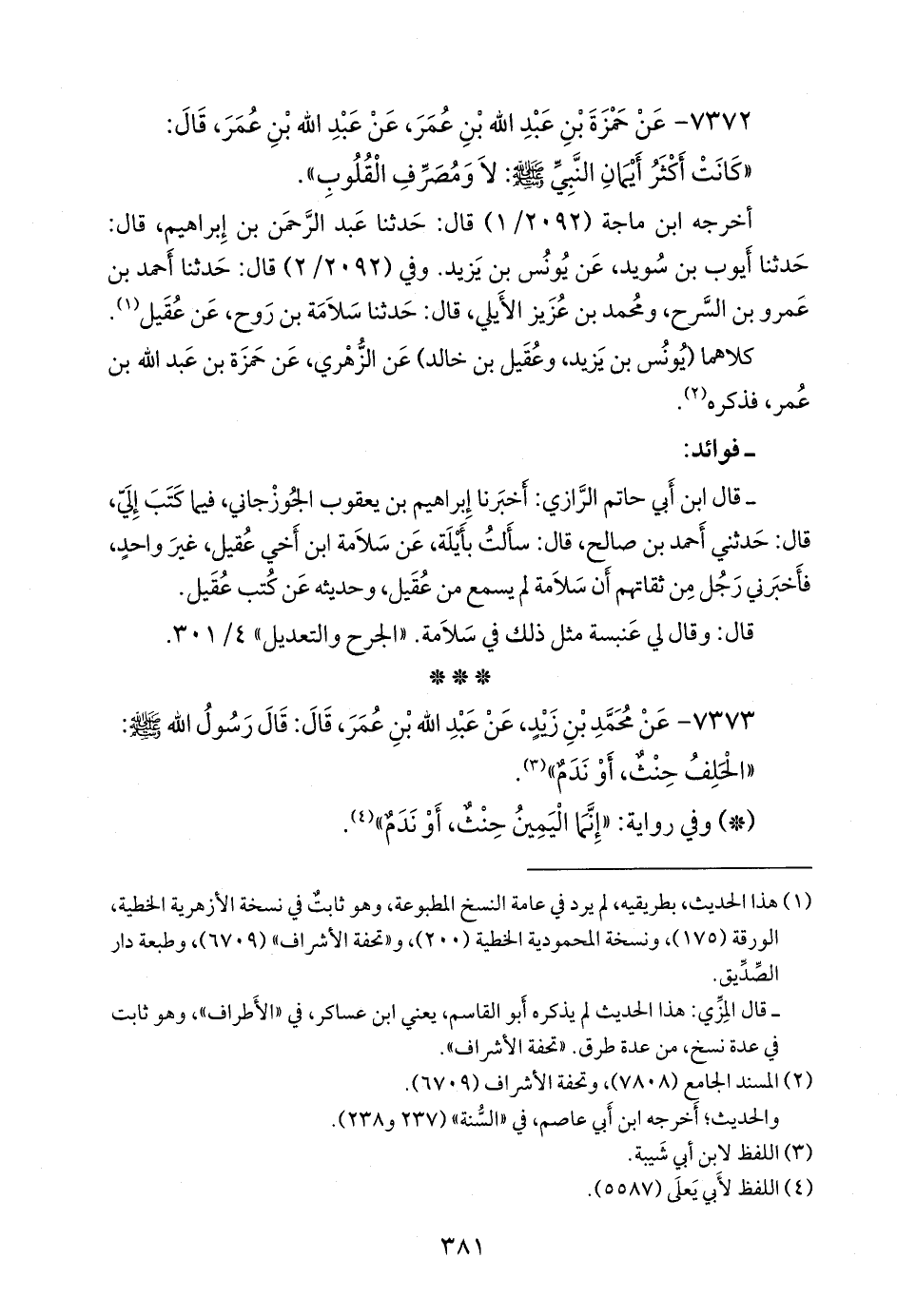 ٧٣٧٣ - عن محمد بن زيد، عن عبد الله بن عمر، قال: قال رسول الله صَلى الله عَليه وسَلم: