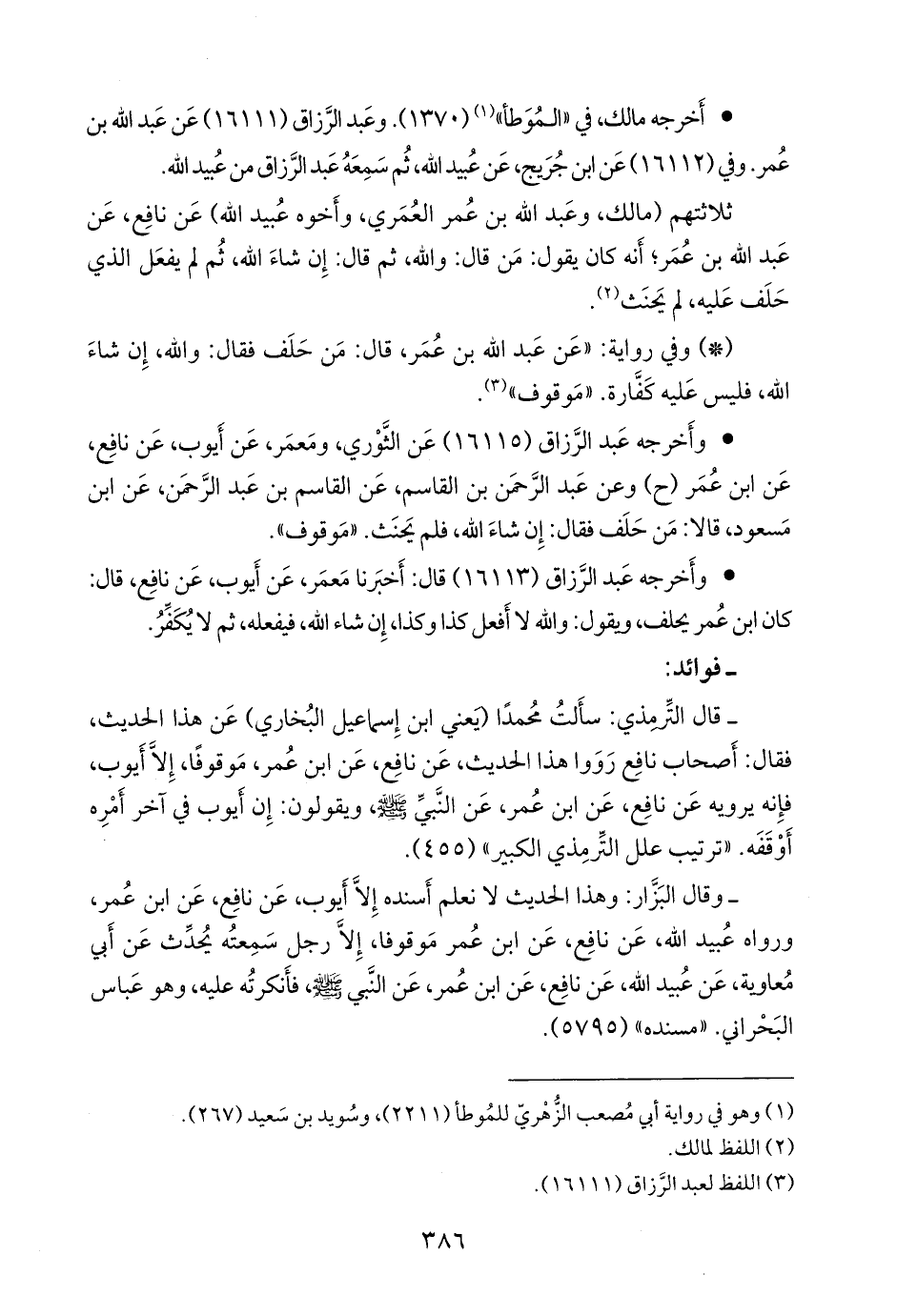 ثلاثتهم (مالك، وعبد الله بن عمر العُمَري، وأخوه عُبيد الله) عن نافع، عن عبد الله بن عمر؛ أنه كان يقول: من قال: والله، ثم قال: إن شاء الله، ثم لم يفعل الذي حلف عليه، لم يحنث (¬٢).