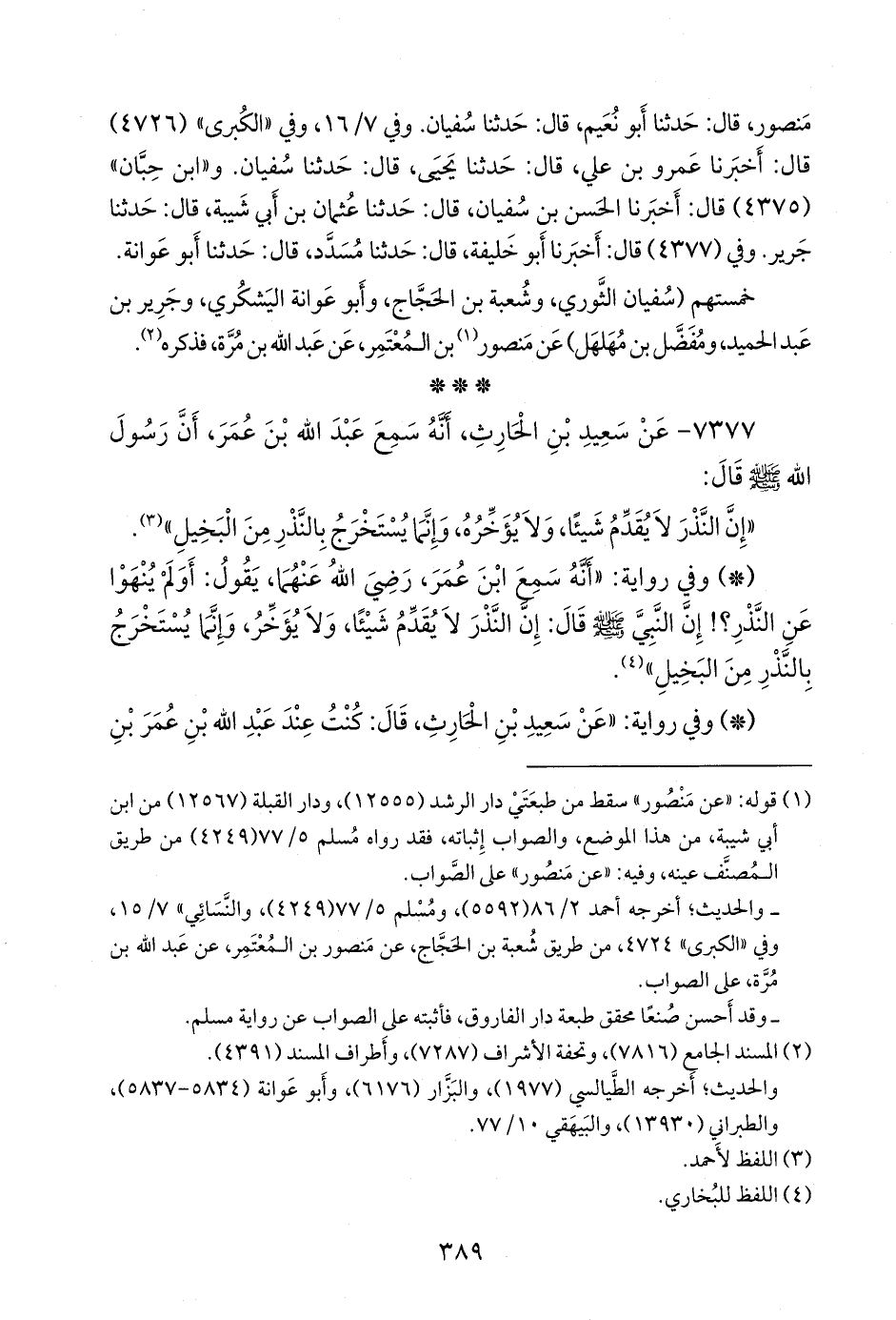 ٧٣٧٧ - عن سعيد بن الحارث، أنه سمع عبد الله بن عمر، أن رسول الله صَلى الله عَليه وسَلم قال: