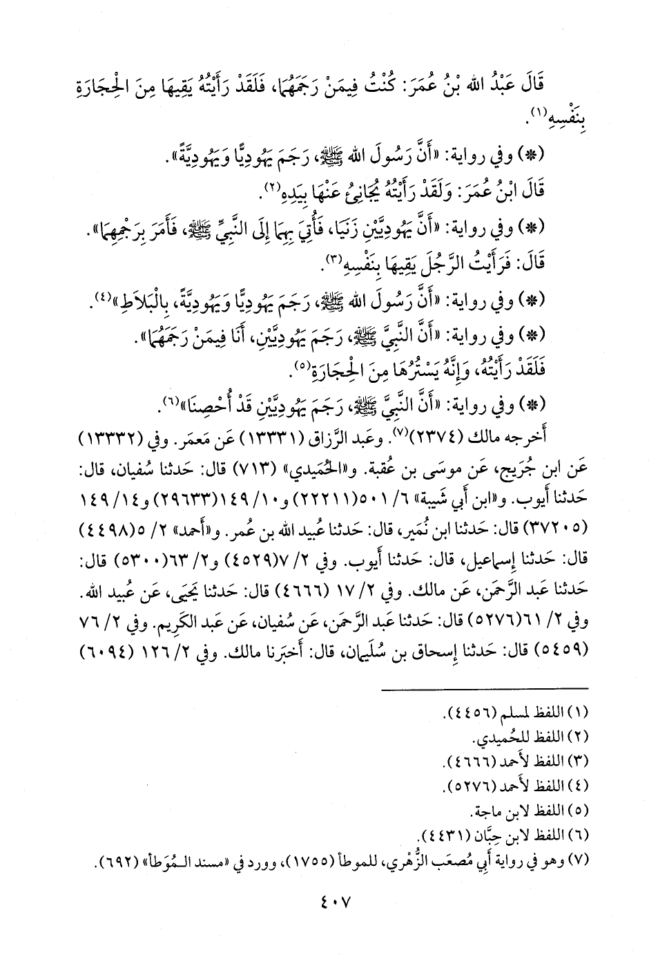 - وفي رواية: «أن النبي صَلى الله عَليه وسَلم رجم يهوديين، أنا فيمن رجمهما».