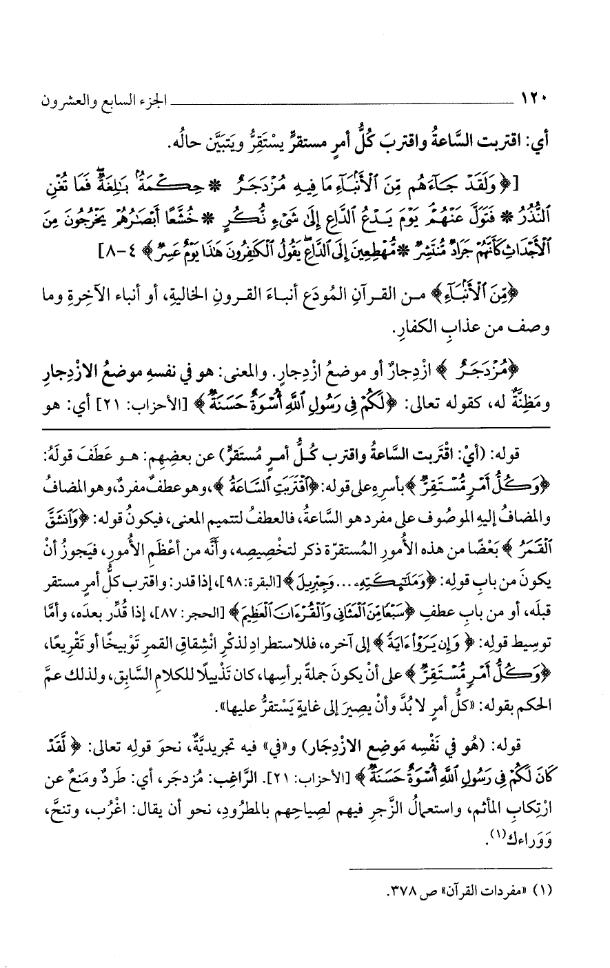 {مُزْدَجَرٌ} ازدجار أو موضع ازدجار. والمعنى: هو في نفسه موضع الازدجار ومظنة له، كقوله تعالى: {لَكُمْ فِي رَسُولِ اللَّهِ أُسْوَةٌ حَسَنَةٌ} [الأحزاب: 21] أي: هو