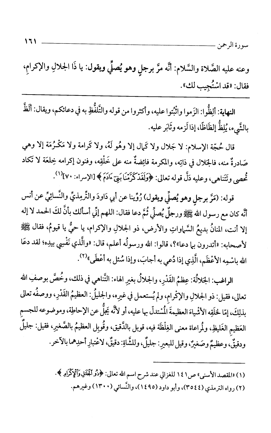 وعنه عليه الصلاة والسلام: أنه مر برجل وهو يصلي ويقول: يا ذا الجلال والإكرام، فقال: "قد استجيب لك".