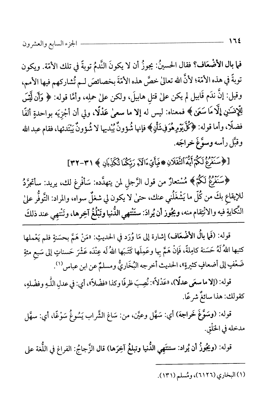 قوله: (فما بال الأضعاف) إشارة إلى ما ورد في الحديث: "من هم بحسنه فلم يعملها كتبها الله له حسنة كاملة، فإن هم بها وعملها كتبها الله له عنده عشر حسنات إلى سبع مئة ضعف إلى أضعاف كثيرة"، الحديث أخرجه البخاري ومسلم عن ابن عباس.