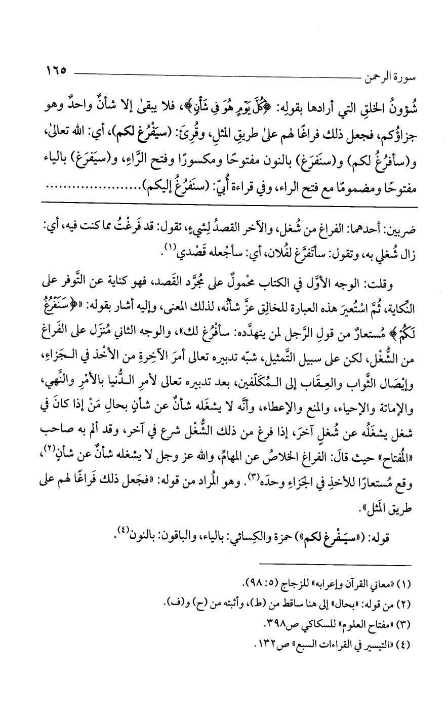 قوله: ("سيفرغ لكم") حمزة والكسائي: بالياء، والباقون: بالنون.