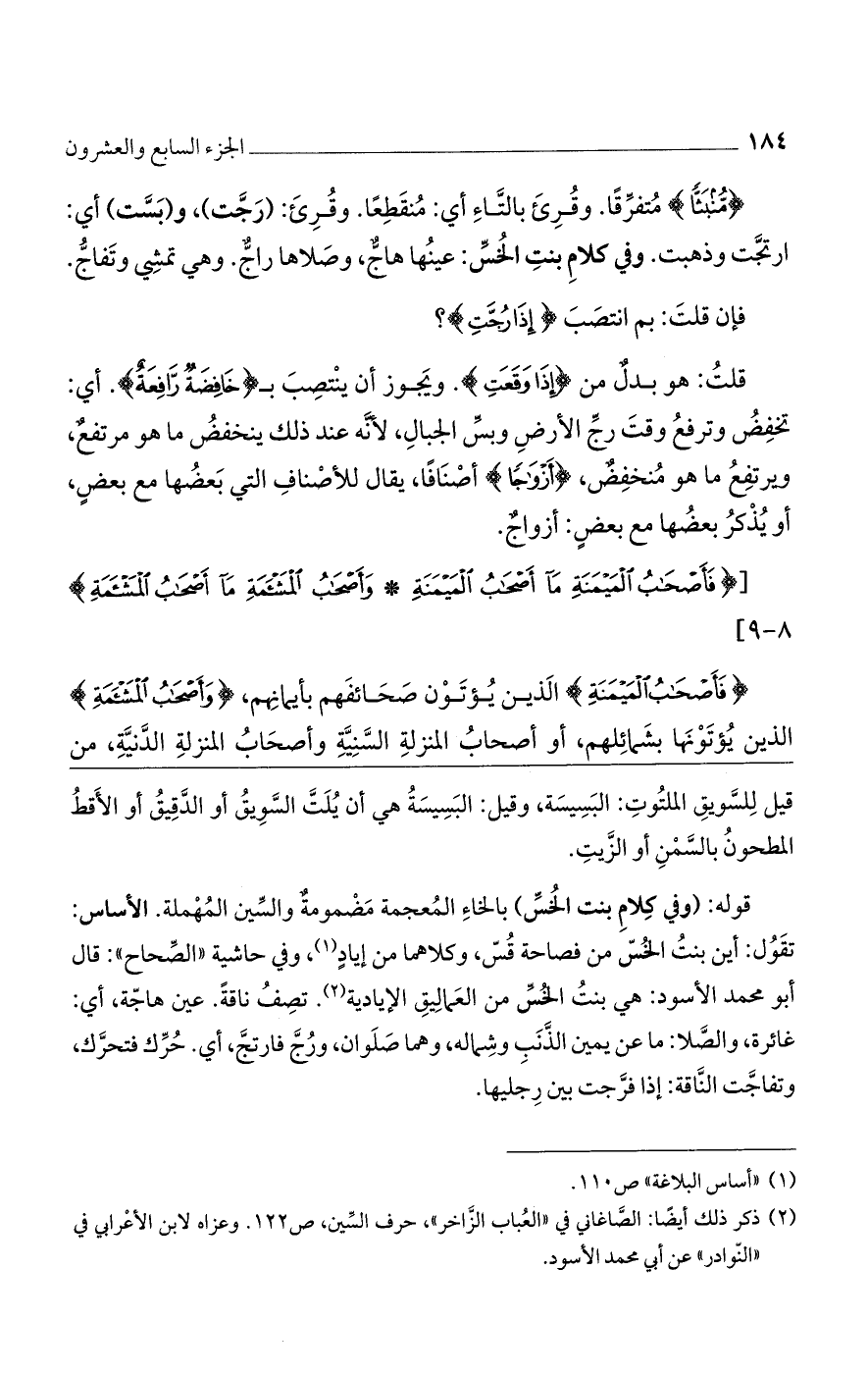{مُّنْبَثًا} متفرقا. وقرئ بالتاء أي: منقطعا. وقرئ: (رجت)، و (بست) أي: ارتجت وذهبت. وفي كلام بنت الخس: عينها هاج، وصلاها راج. وهي تمشي وتفاج.
