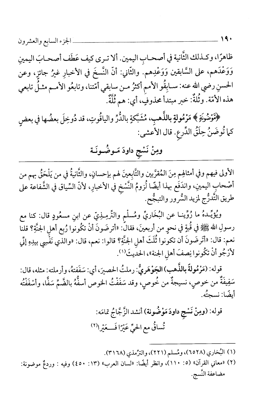 قوله: (ومن نسج دواود موضونة) أنشد الزجاج تمامه: