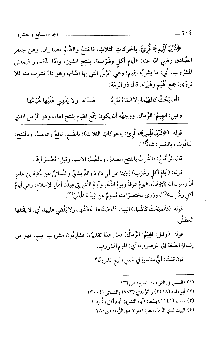 قوله: (أيام أكل وشرب) روينا عن أبي داود والترمذي والنسائي عن عقبة بن عامر أن رسول الله صلى الله عليه وسلم قال: "يوم عرفة ويوم النحر وأيام التشريق عيدنا أهل الإسلام، وهي أيام أكل وشرب"، وروى مختصرًا منه مسلم عن نبيشة الهذلي.
