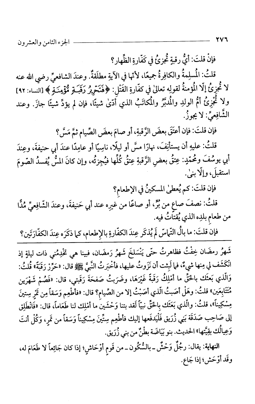 قلت: المسلمة والكافرة جميعًا، لأنها في الآية مطلقة. وعند الشافعي رضي الله عنه لا تجزئ إلا المؤمنة لقوله تعالى في كفارة القتل: {فَتَحْرِيرُ رَقَبَةٍ مُؤْمِنَةٍ} [النساء: 92]