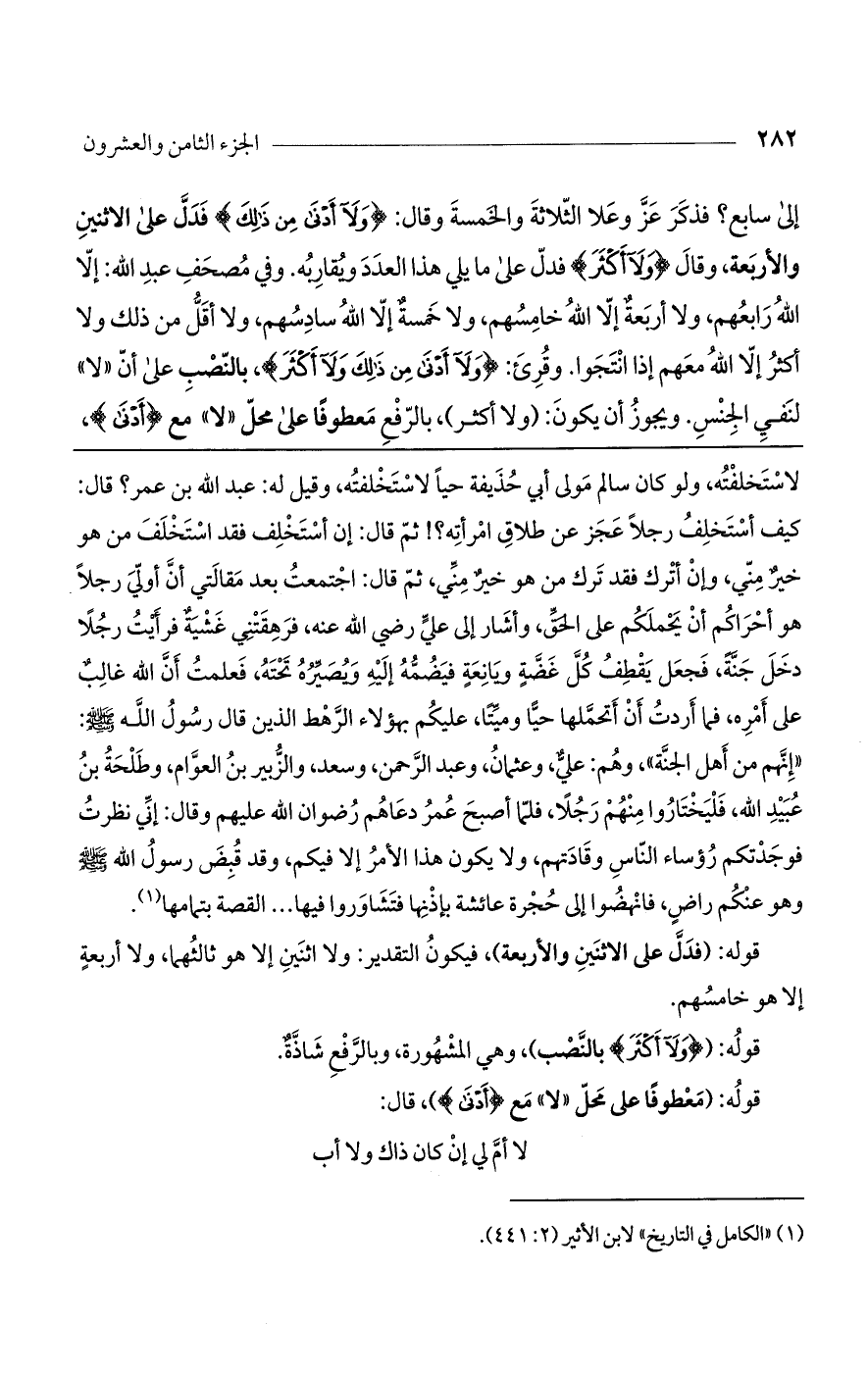 قوله: ({وَلَا أَكْثَرُ} بالنصب)، وهي المشهورة، وبالرفع شاذة.