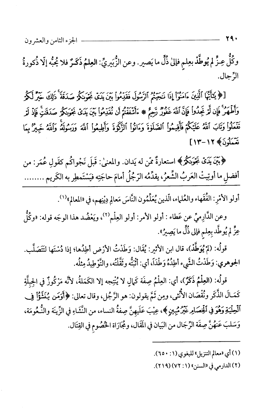 وعن الدارمي عن عطاء: أولو الأمر: أولو العلم، ويعضد هذا الوجه قوله: "وكل عز لم يوطد بعلم فإلى ذل ما يصير".