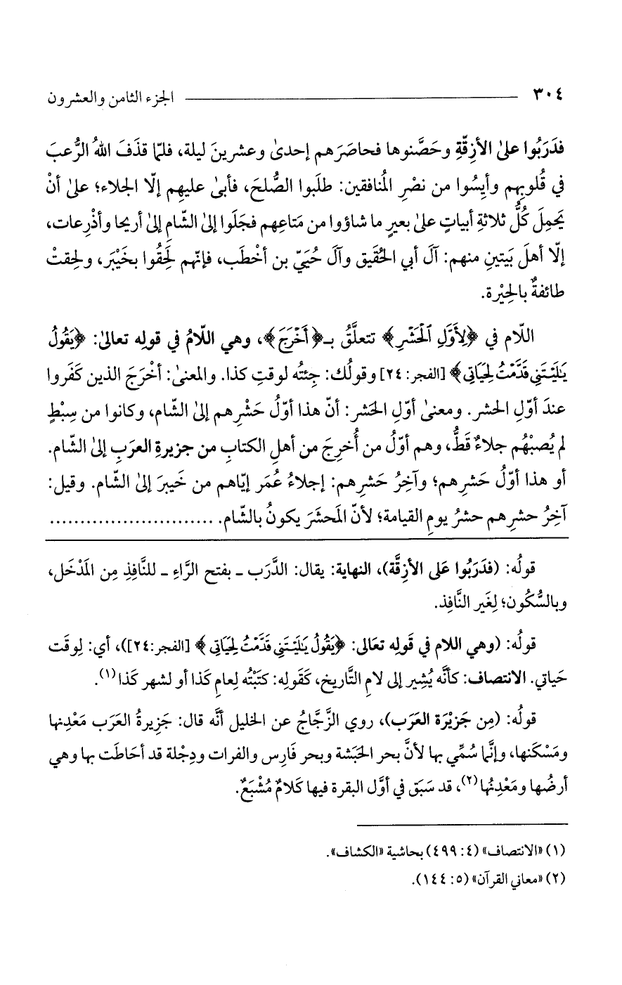 قوله: (من جزيرة العرب)، روي الزجاج عن الخليل أنه قال: جزيرة العرب معدنها ومسكنها، وإنما سمي بها لأن بحر الحبشة وبحر فارس والفرات ودجلة قد أحاطت بها وهي أرضها ومعدنها، قد سبق في أول البقرة فيها كلام مشبع.
