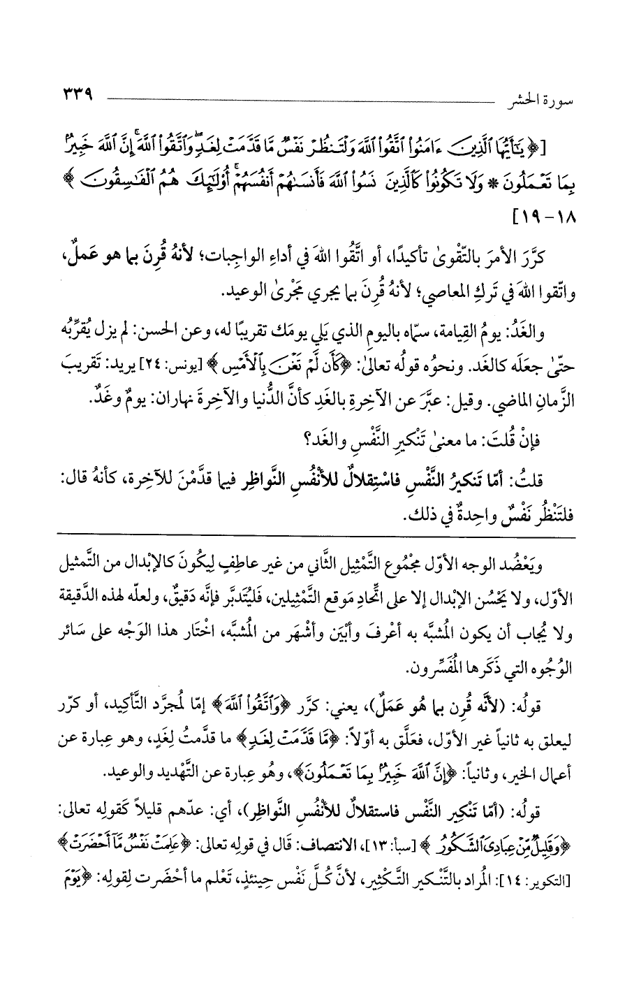 [{يَا أَيُّهَا الَّذِينَ آمَنُوا اتَّقُوا اللَّهَ ولْتَنظُرْ نَفْسٌ مَّا قَدَّمَتْ لِغَدٍ واتَّقُوا اللَّهَ إنَّ اللَّهَ خَبِيرٌ بِمَا تَعْمَلُونَ * ولا تَكُونُوا كَالَّذِينَ نَسُوا اللَّهَ فَأَنسَاهُمْ أَنفُسَهُمْ أُوْلَئِكَ هُمُ الفَاسِقُونَ} 18 - 19]