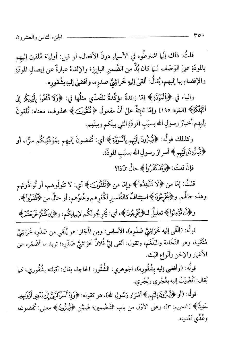 وكذلك قوله: {تُسِرُّونَ إلَيْهِم بِالْمَوَدَّةِ} أي: تفضون إليهم بمودتكم سرًا، أو {تُسِرُّونَ إلَيْهِم} أسرار رسول الله بسبب المودة.