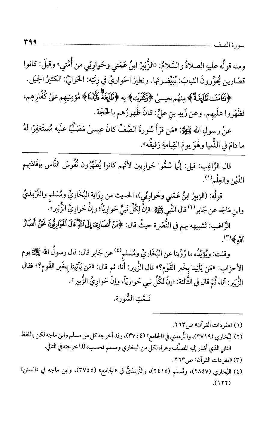 عن رسول الله صلى الله عليه وسلم: " من قرأ سورة الصف كان عيسى مصليًا عليه مستغفرًا له ما دام الدنيا وهو يوم القيامة رفيقه".