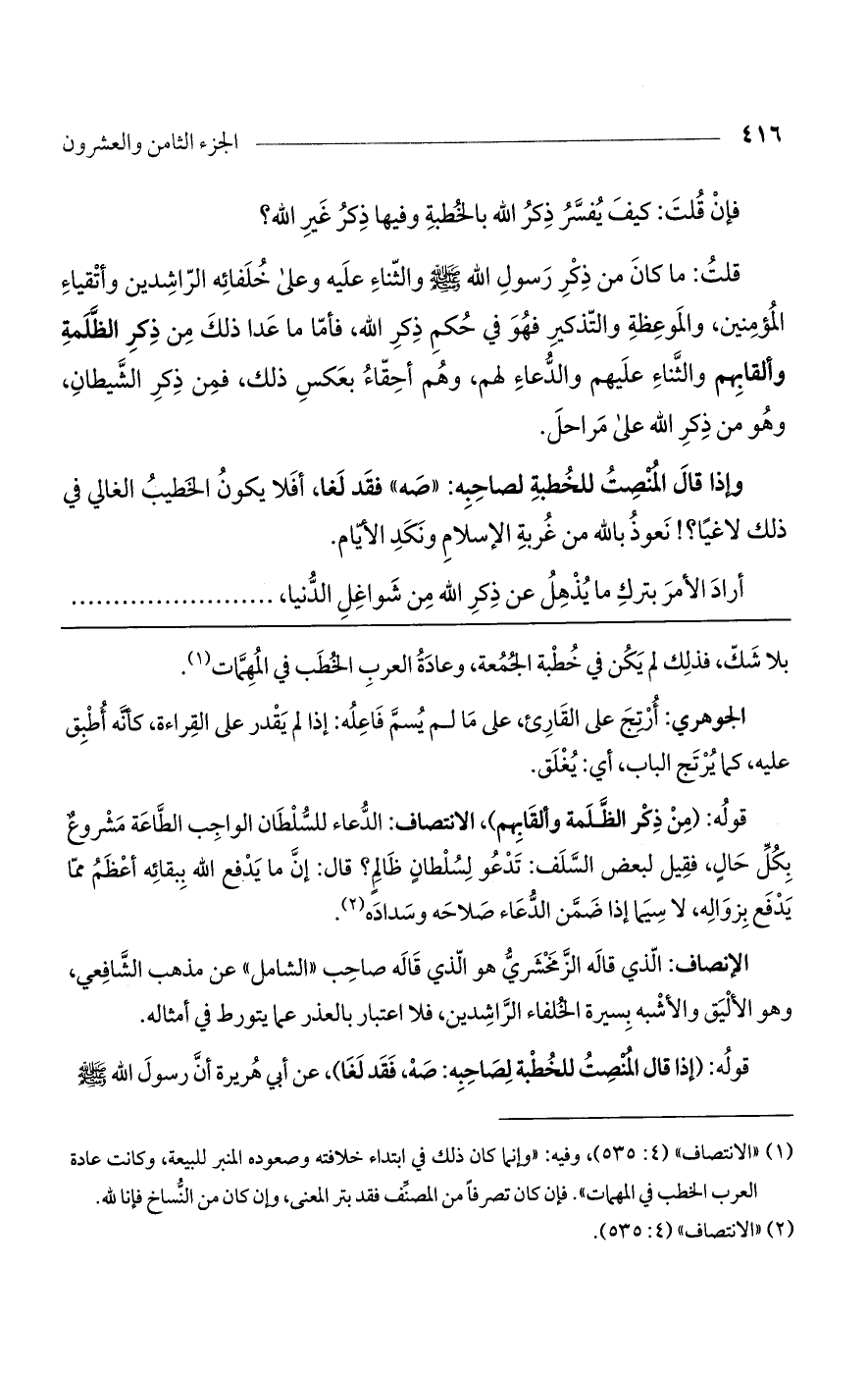 وإذا قال المنصت للخطبة لصاحبه: "صه" فقد لغا، أفلا يكون الخطيب الغالي في ذلك لا غيا؟ ! نعوذ بالله من غربة الإسلام ونكد الأيام.
