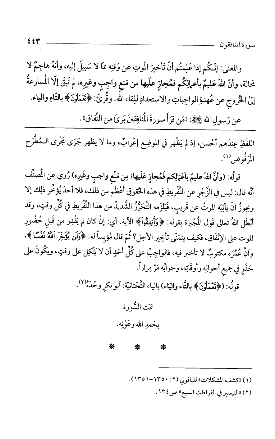 تمت السورة