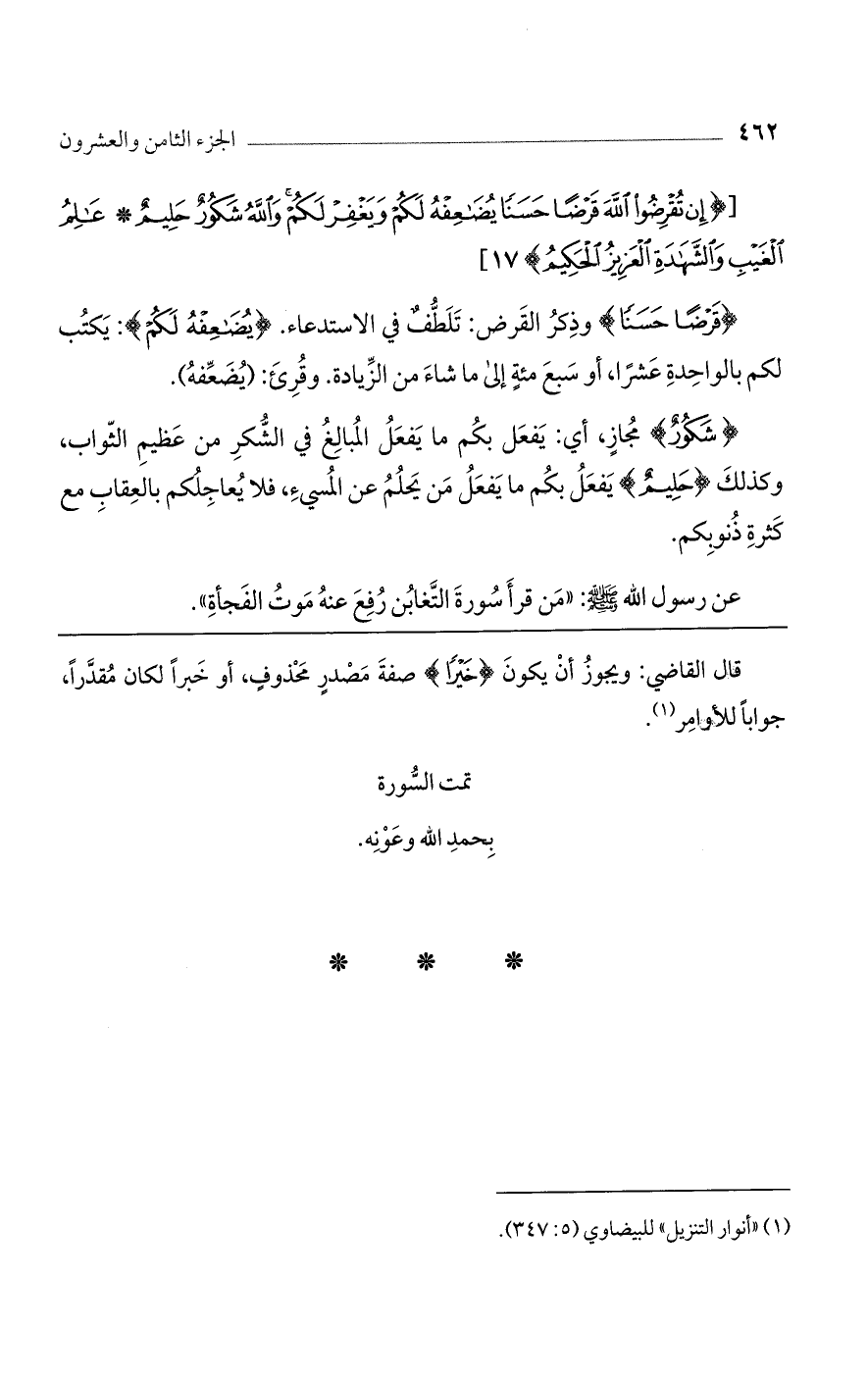 [{إن تُقْرِضُوا اللَّهَ قَرْضًا حَسَنًا يُضَاعِفْهُ لَكُمْ وَيَغْفِرْ لَكُمْ وَاللَّهُ شَكُورٌ حَلِيمٌ * عَالِمُ الغَيْبِ وَالشَّهَادَةِ العَزِيزُ الحَكِيمُ} 17]