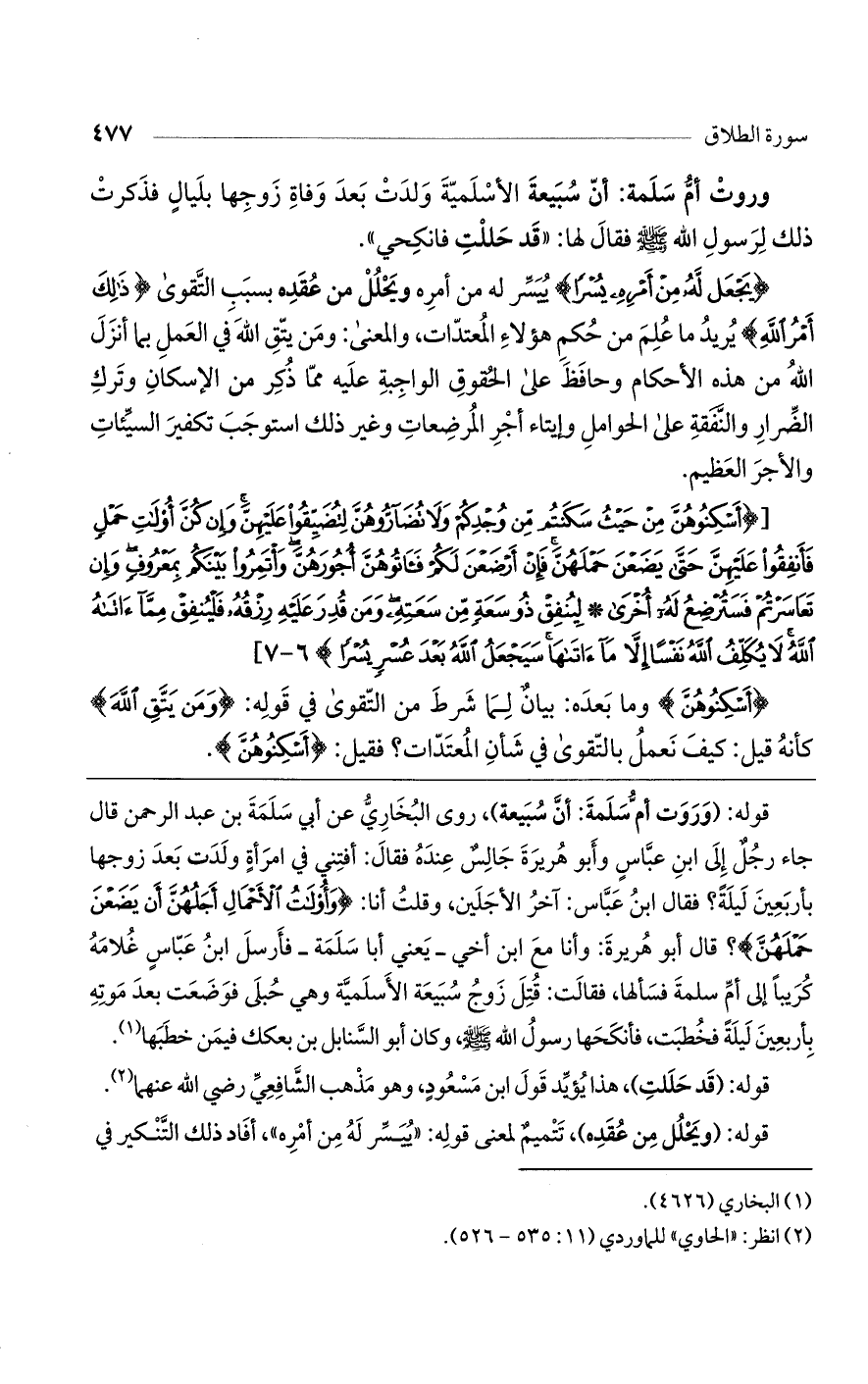 [{أَسْكِنُوهُنَّ مِنْ حَيْثُ سَكَنتُم مِّن وجْدِكُمْ ولا تُضَارُّوهُنَّ لِتُضَيِّقُوا عَلَيْهِنَّ وإن كُنَّ أُوْلاتِ حَمْلٍ فَأَنفِقُوا عَلَيْهِنَّ حَتَّى يَضَعْنَ حَمْلَهُنَّ فَإنْ أَرْضَعْنَ لَكُمْ فَآتُوهُنَّ أُجُورَهُنَّ واتَمِرُوا بَيْنَكُم بِمَعْرُوفٍ وإن تَعَاسَرْتُمْ فَسَتُرْضِعُ لَهُ أُخْرَى * لِيُنفِقْ ذُو سَعَةٍ مِّن سَعَتِهِ ومَن قُدِرَ عَلَيْهِ رِزْقُهُ فَلْيُنفِقْ مِمَّا آتَاهُ اللَّهُ لا يُكَلِّفُ اللَّهُ نَفْسًا إلاَّ مَا آتَاهَا سَيَجْعَلُ اللَّهُ بَعْدَ عُسْرٍ يُسْرًا} 6 - 7]