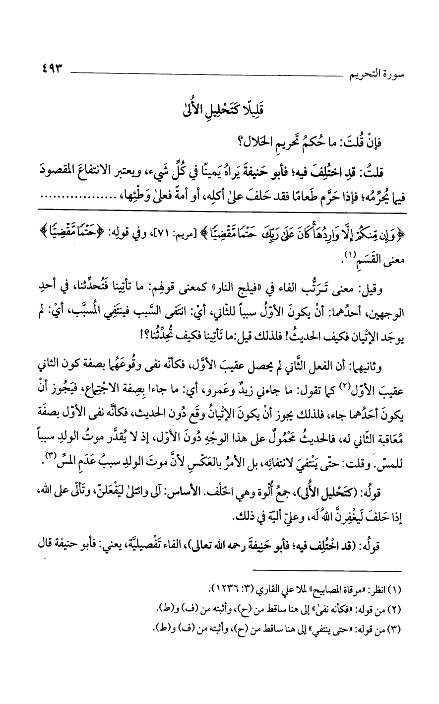 فإن قلت: ما حكم تحريم الحلال؟