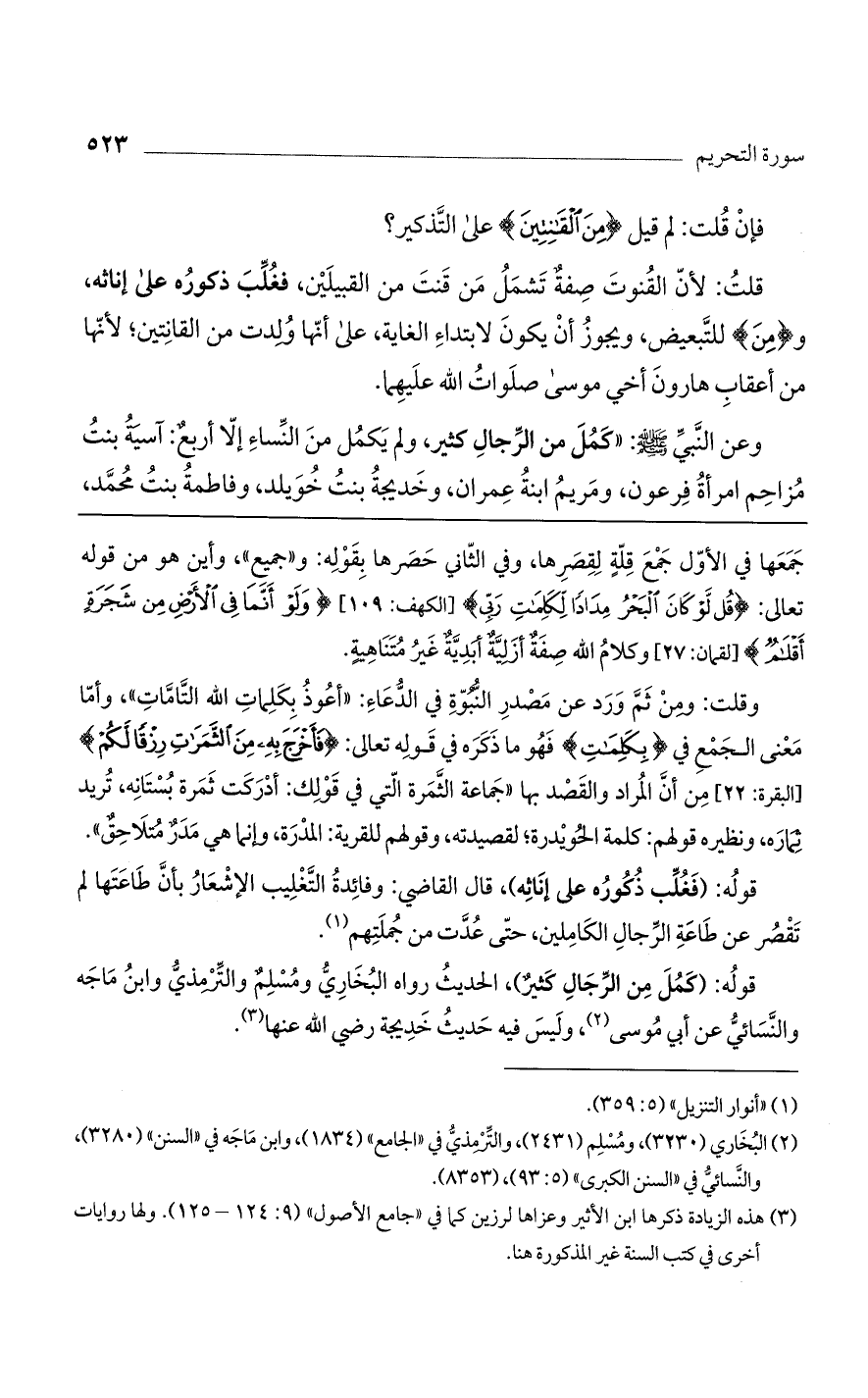 قوله: (كمل من الرجال كثير)، الحديث رواه البخاري ومسلم والترمذي وابن ماجه والنسائي عن أبي موسى، وليس فيه حديث خديجة رضي الله عنها.