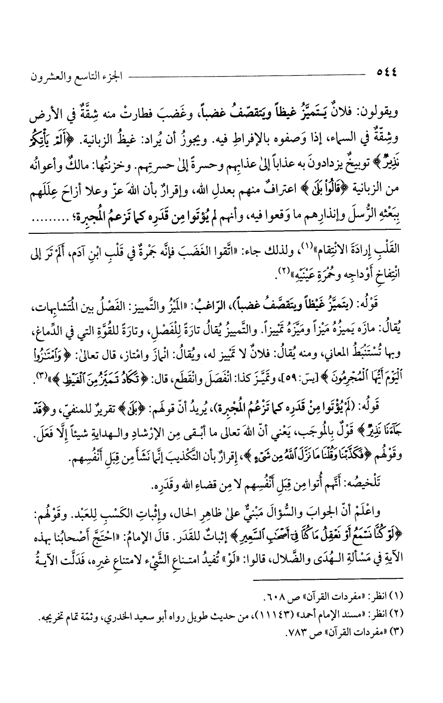 قوله: (يتميز غيظًا ويتقصف غضبًا)، الراغب: "الميز والتمييز: الفصل بين المتشابهات، يقال: مازه يميزه ميزًا وميزه تمييزًا. والتمييز يقال تارة للفصل، وتارة للقوة التي في الدماغ، وبها تستنبط المعاني، ومنه يقال: فلان لا تمييز له، ويقال: انماز وامتاز، قال تعالى: {وَامْتَازُوا الْيَوْمَ أَيُّهَا الْمُجْرِمُونَ} [يس: 59]، وتميز كذا: انفصل وانقطع، قال: {تَكَادُ تَمَيَّزُ مِنَ الغَيْظِ} ".