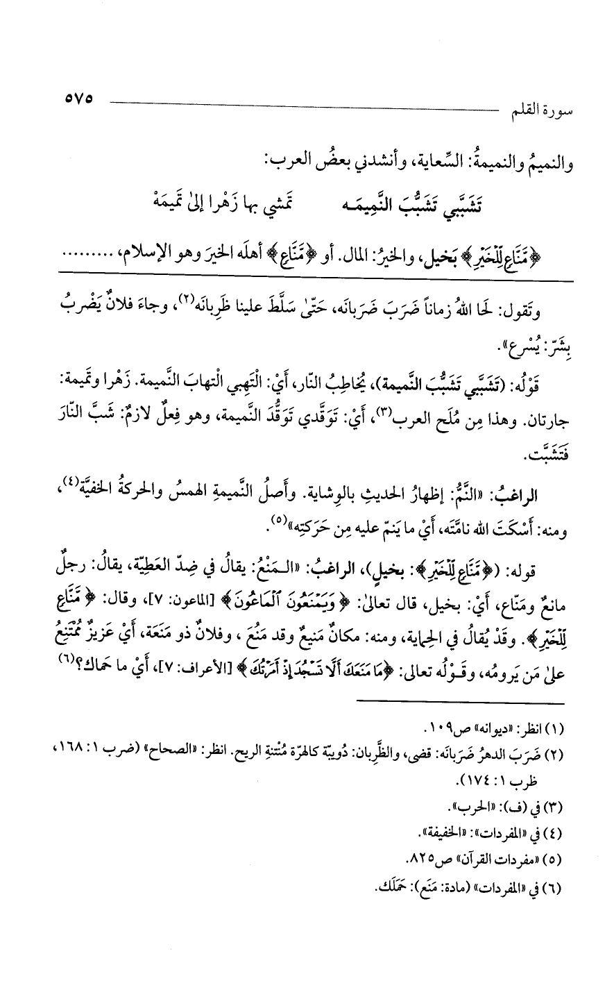 قوله: ({مَنَّاعٍ لِّلْخَيْرِ}: بخيل)، الراغب: "المتع: يقال في ضد العطية، يقال: رجل مانع ومناع، أي: بخيل، قال تعالى: {وَيَمْنَعُونَ المَاعُونَ} [الماعون: 7]، وقال: {مَنَّاعٍ لِّلْخَيْرِ}. وقد يقال في الحماية، ومنه: مكان منيع وقد منع، وفلان ذو منعة، أي: عزيز ممتنع على من يرومه، وقوله تعالى: {مَا مَنَعَكَ أَلَّا تَسْجُدَ إِذْ أَمَرْتُكَ} [الأعراف: 7]، أي: ما حماك؟