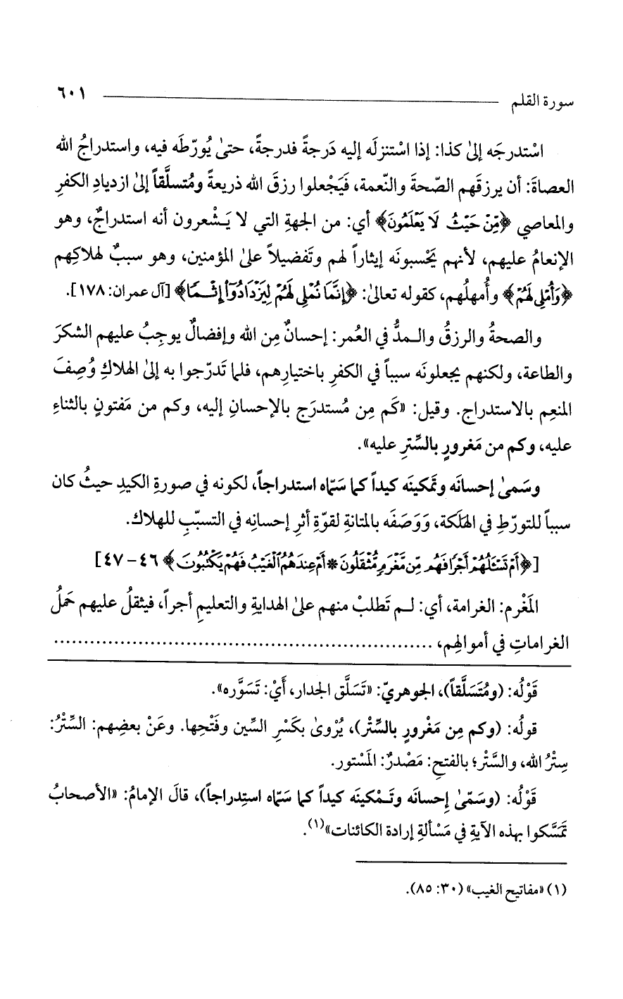 قوله: (وسمى إحسانه وتمكينه كيدًا كما سماه استدراجًا)، قال الإمام: "الأصحاب تمسكوا بهذه الآية في مسألة إرادة الكائنات".