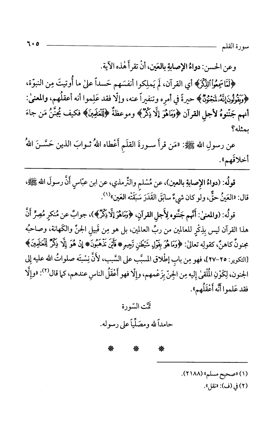 عن رسول الله صلى الله عليه وسلم: "من قرأ سورة القلم أعطاه الله ثواب الذين حسن الله أخلاقهم".