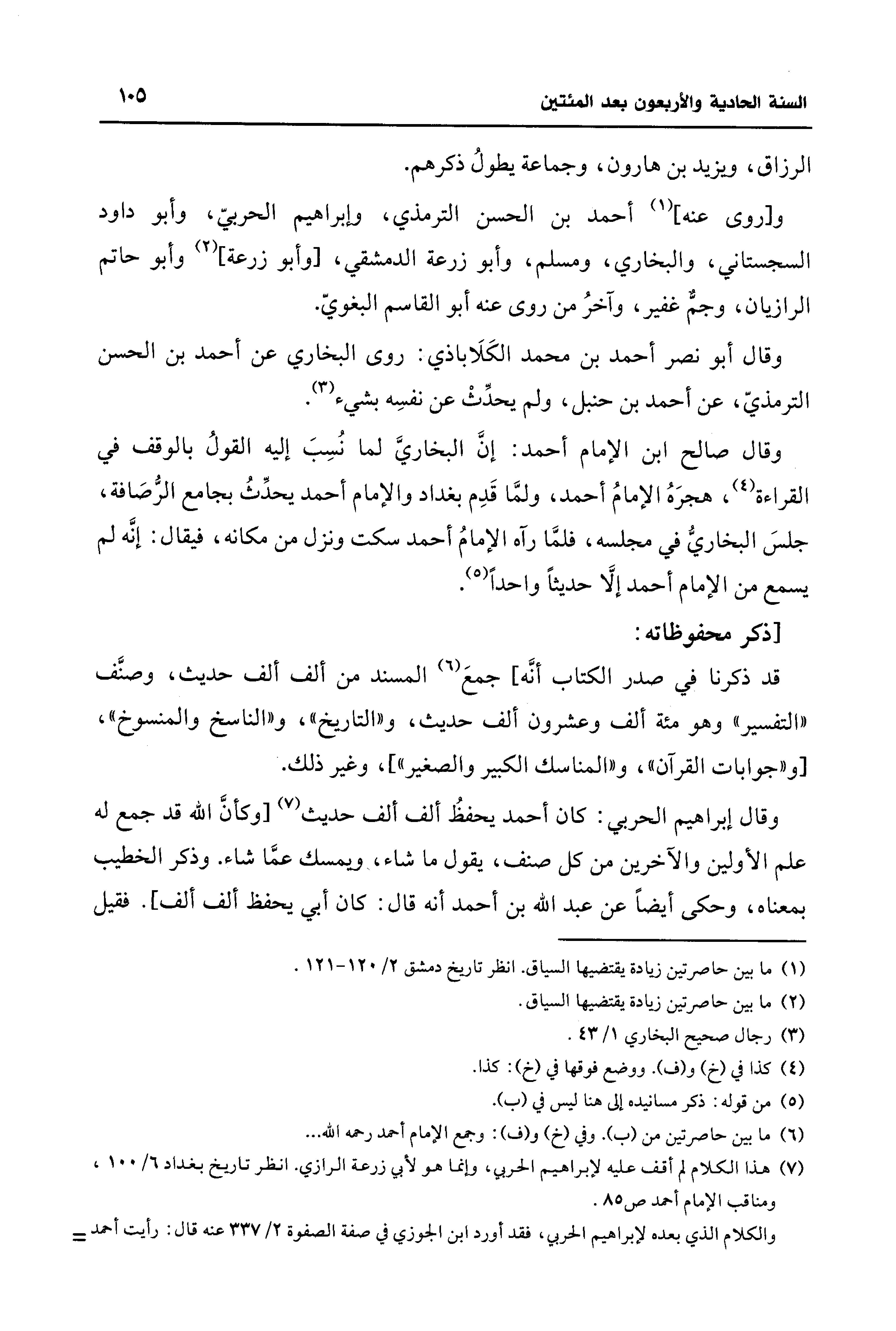 (¬7) هذا الكلام لم أقف عليه لإبراهيم الحربي، وإنما هو لأبي زرعة الرازي. انظر تاريخ بغداد 6/ 100، ومناقب الإمام أحمد ص 85.