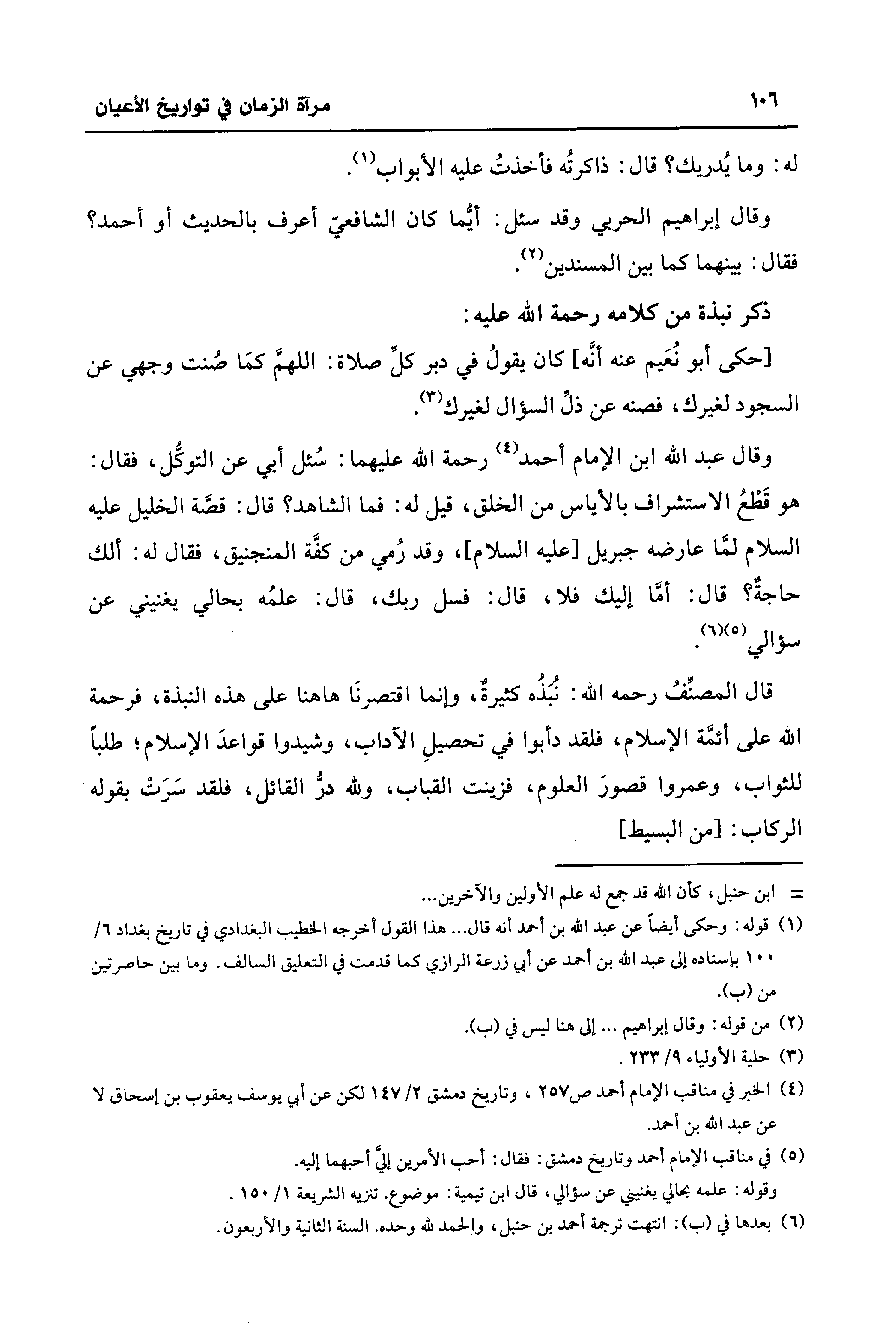 (¬6) بعدها في (ب): انتهت ترجمة أحمد بن حنبل، والحمد لله وحده. السنة الثانية والأربعون.