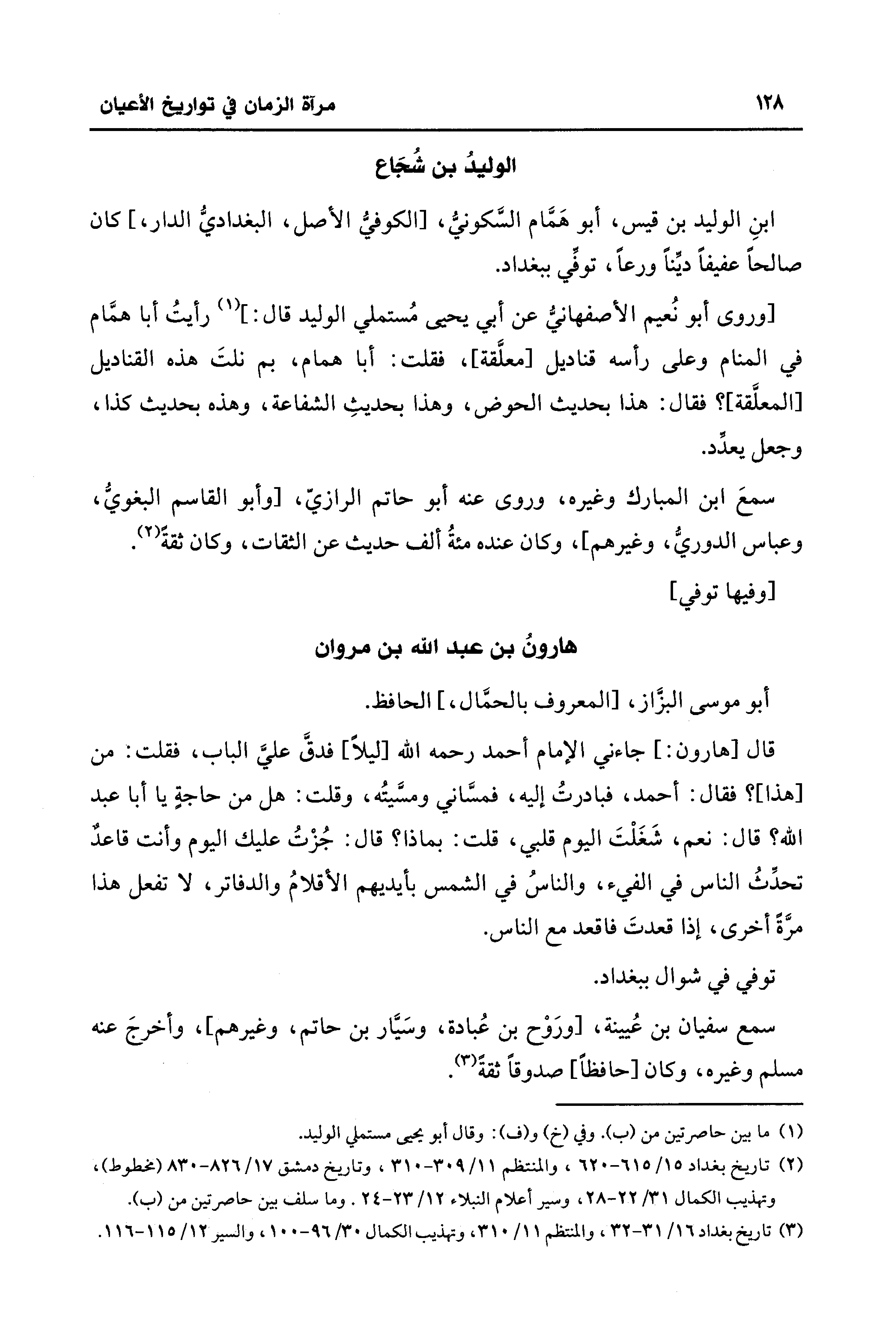 (¬3) تاريخ بغداد 16/ 31 - 32، والمنتظم 11/ 310، وتهذيب الكمال 30/ 96 - 100، والسير 12/ 115 - 116.