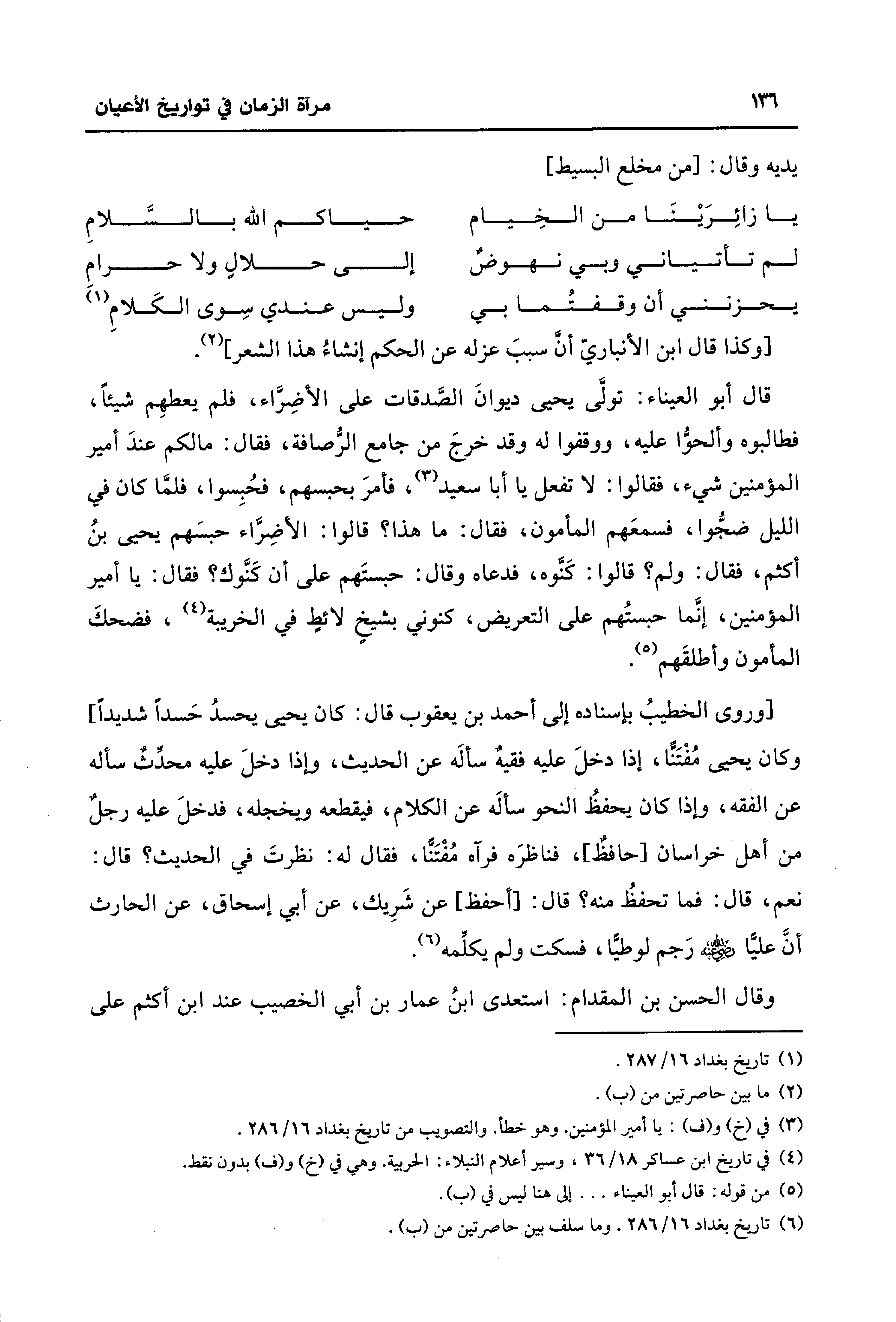 (¬6) تاريخ بغداد 16/ 286. وما سلف بين حاصرتين من (ب).