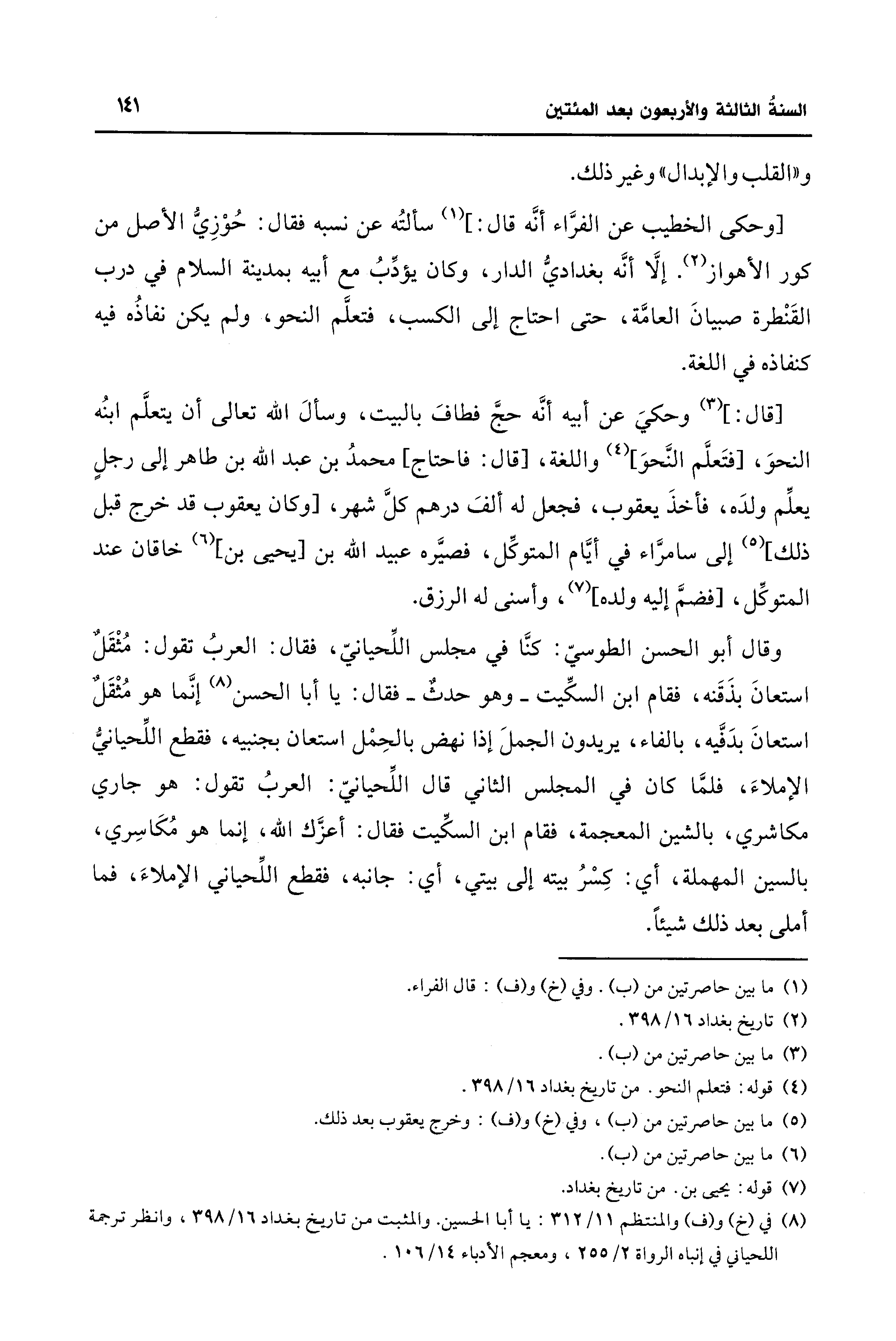 (¬4) قوله: فتعلم النحو. من تاريخ بغداد 16/ 398.