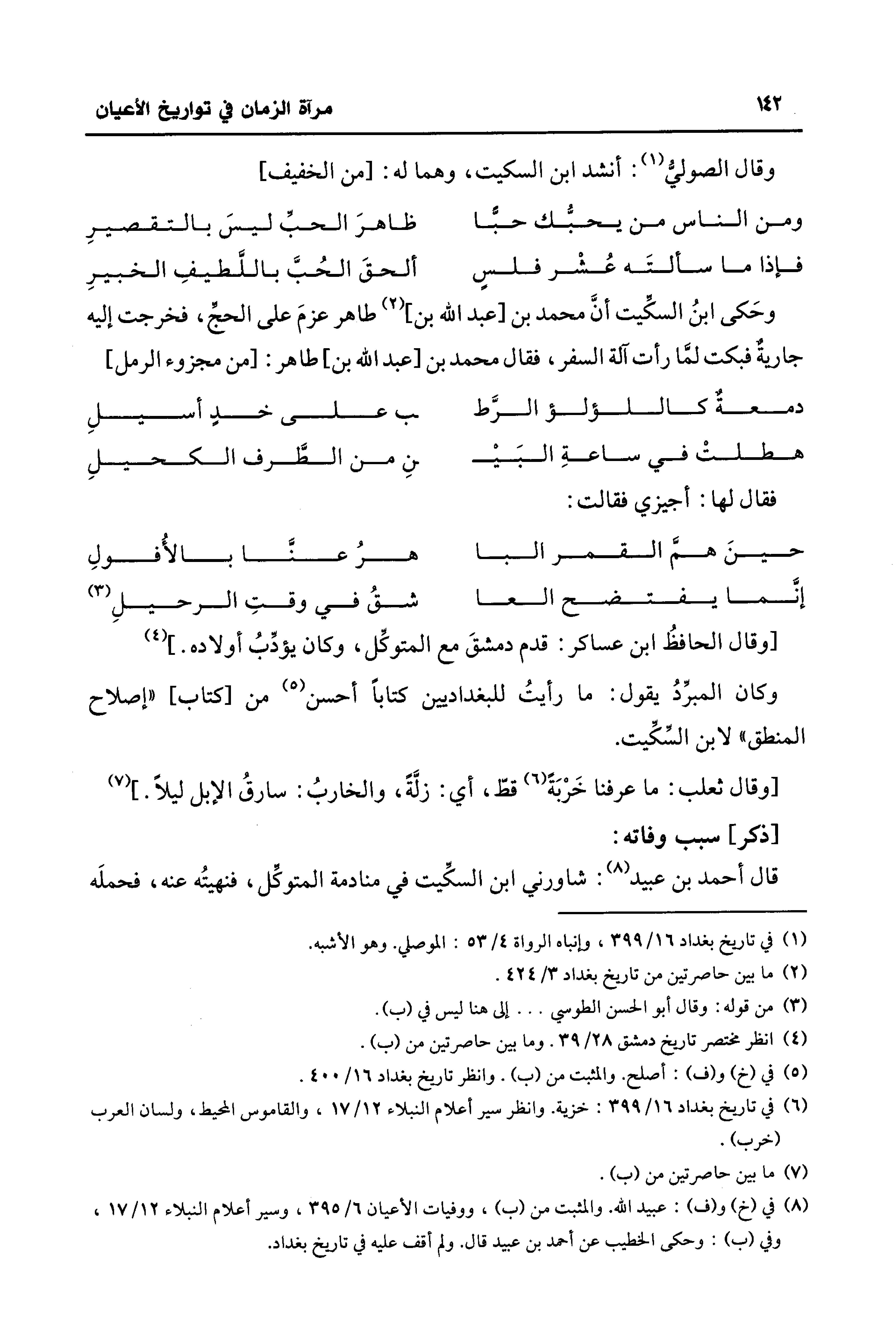 (¬8) في (خ) و (ف): عبيد الله. والمثبت من (ب)، ووفيات الأعيان 6/ 395، وسير أعلام النبلاء 12/ 17، وفي (ب): وحكى الخطيب عن أحمد بن عبيد قال. ولم أقف عليه في تاريخ بغداد.