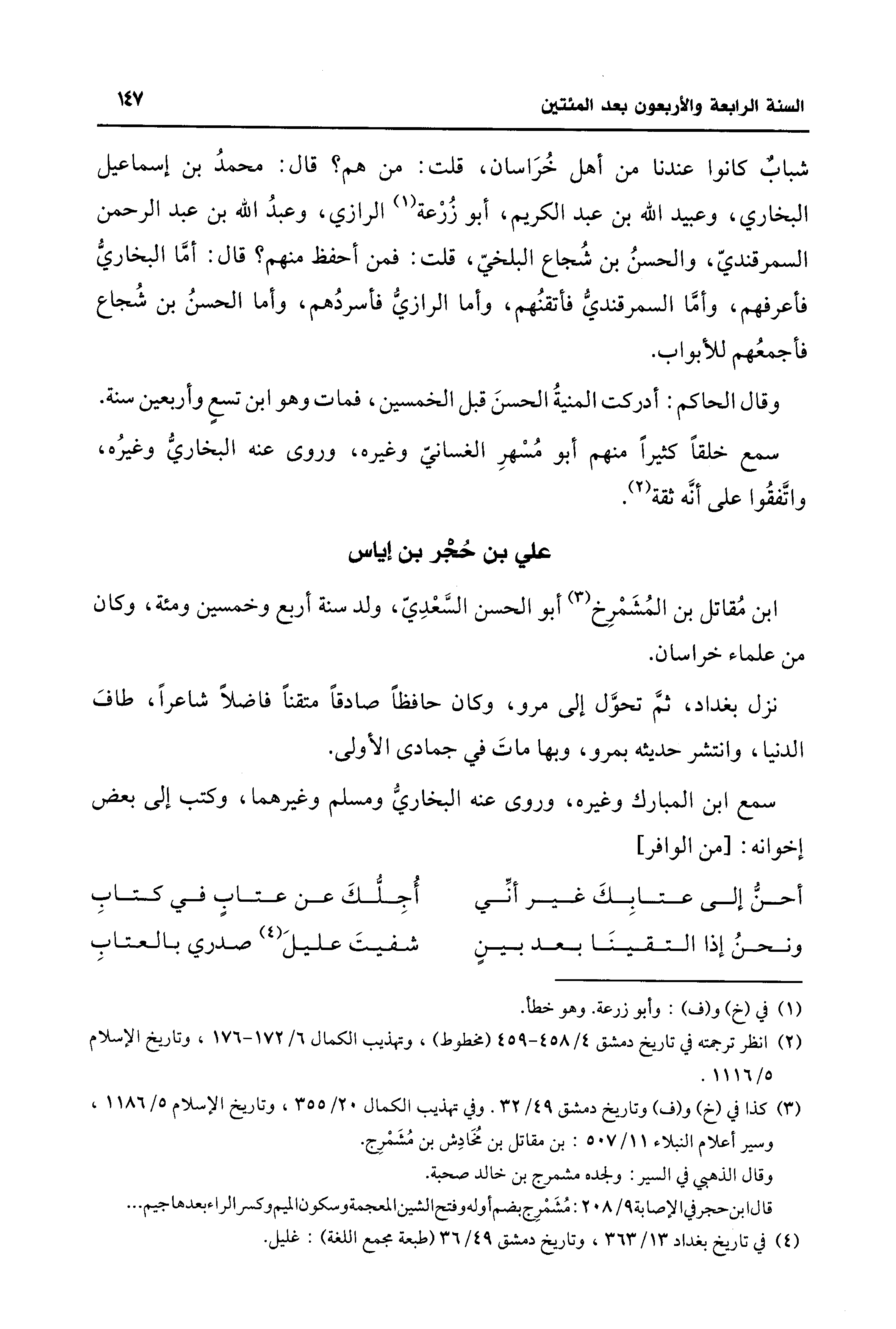 سمع ابن المبارك وغيره، وروى عنه البخاريُّ ومسلم وغيرهما، وكتب إلى بعض إخوانه: [من الوافر]