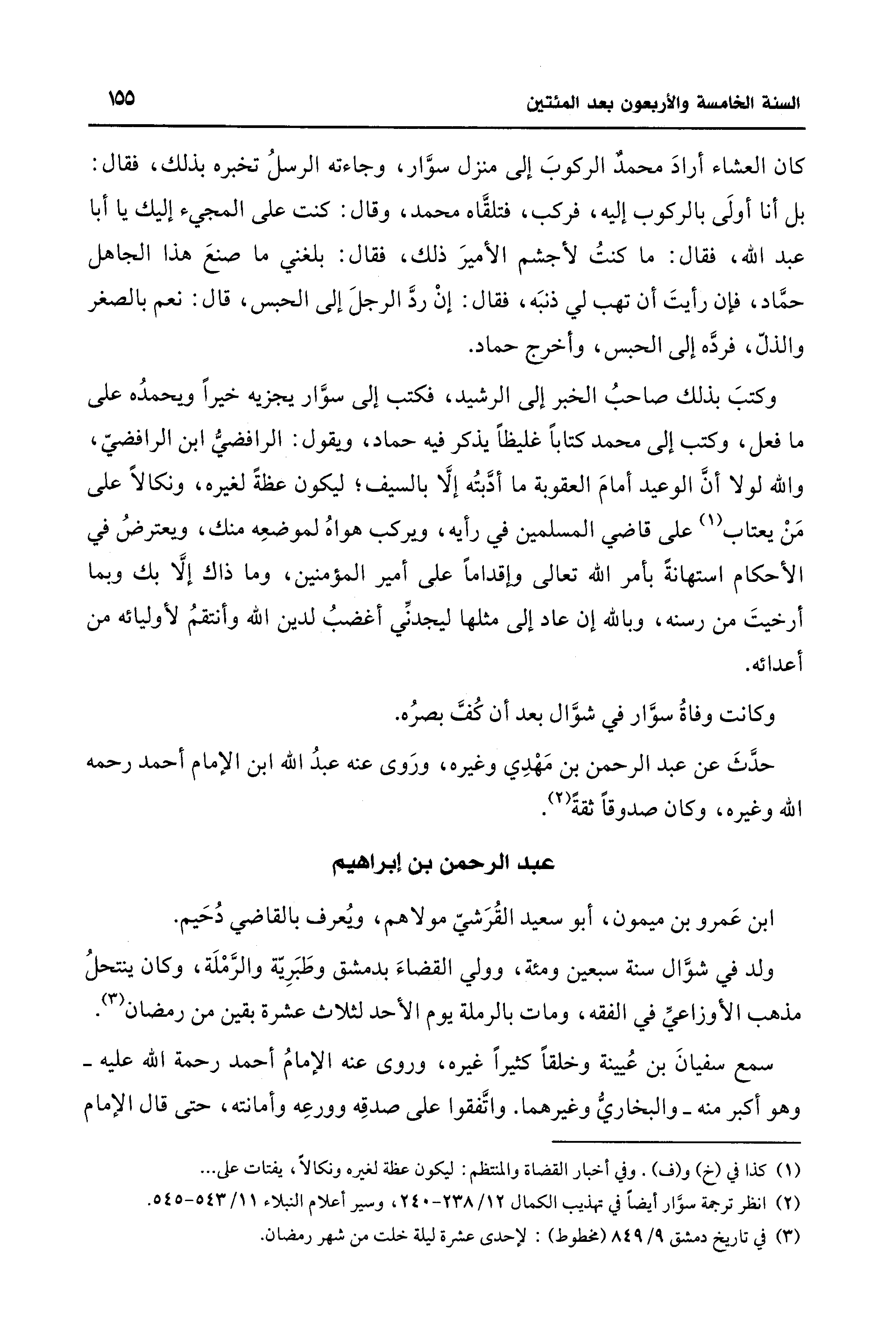 (¬2) انظر ترجمة سوَّار أيضًا في تهذيب الكمال 12/ 238 - 240، وسير أعلام النبلاء 11/ 543 - 545.