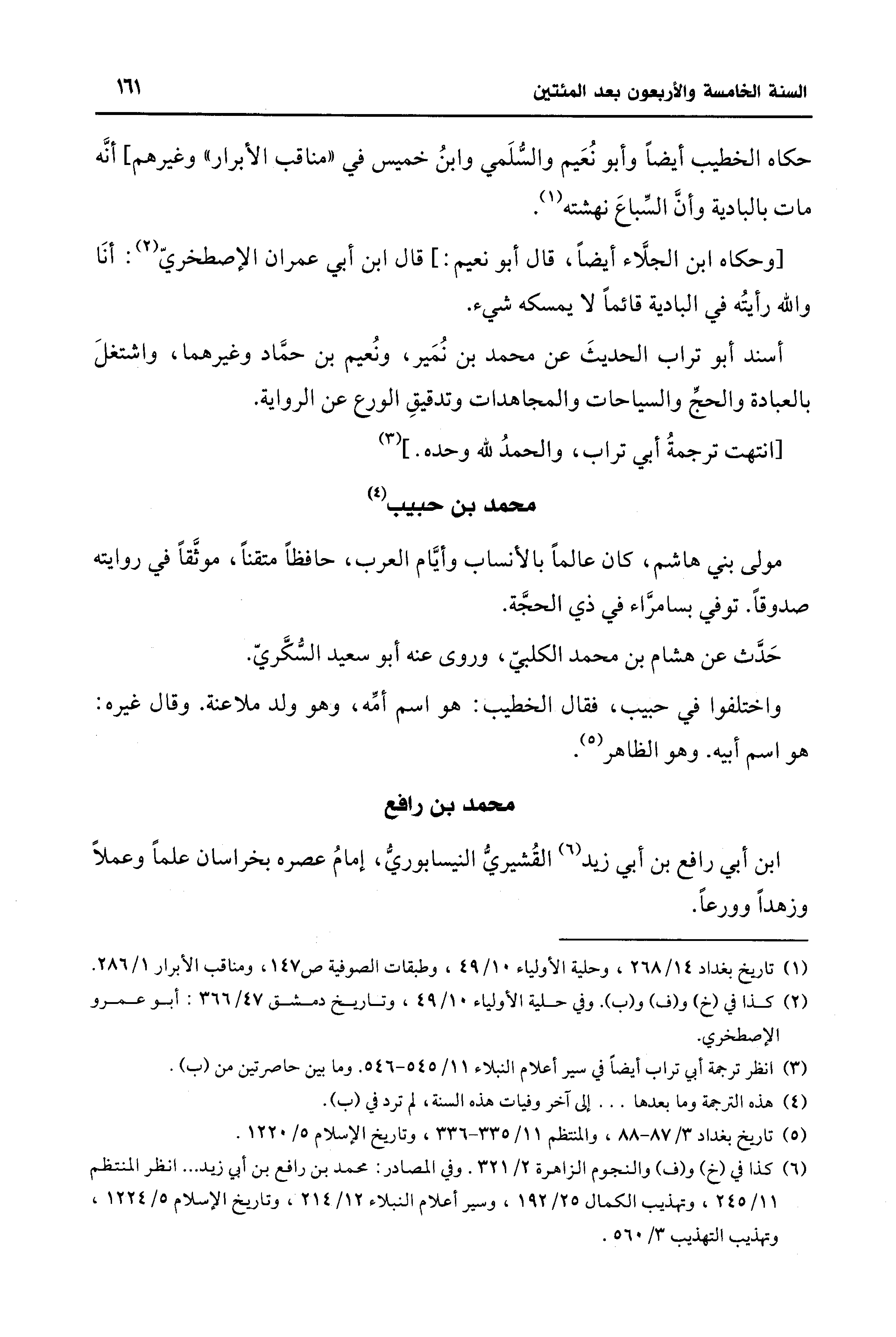 (¬5) تاريخ بغداد 3/ 87 - 88، والمنتظم 11/ 335 - 336، وتاريخ الإسلام 5/ 1220.