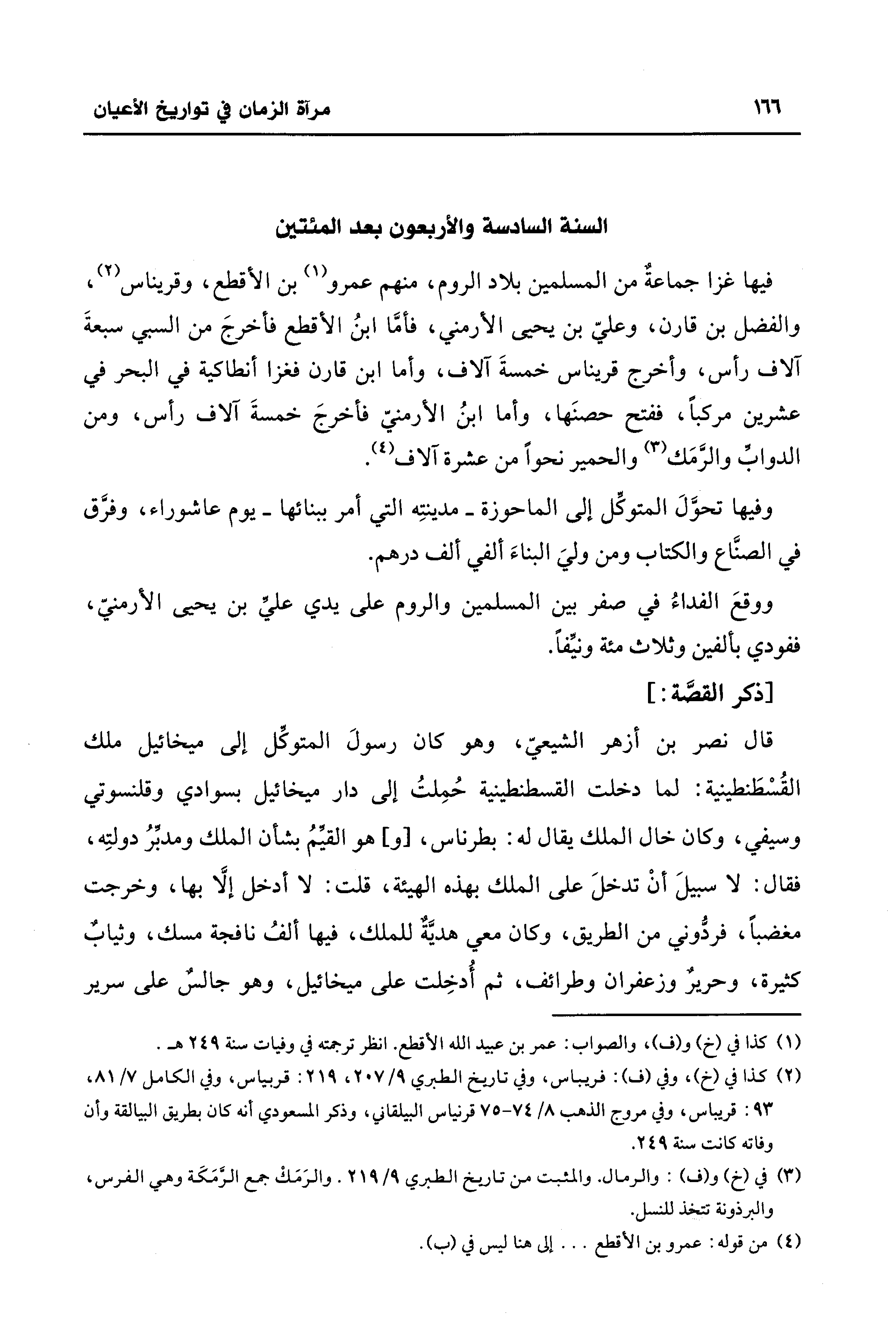 (¬2) كذا في (خ)، وفي (ت): فريباس، وفي تاريخ الطبري 9/ 207، 219: قربياس، وفي الكامل 7/ 81، 93: قريباس، وفي مروج الذهب 8/ 74 - 75 قرنياس البيلقاني، وذكر المسعودي أنه كان بطريق البيالقة وأن وفاته كانت سنة 249.